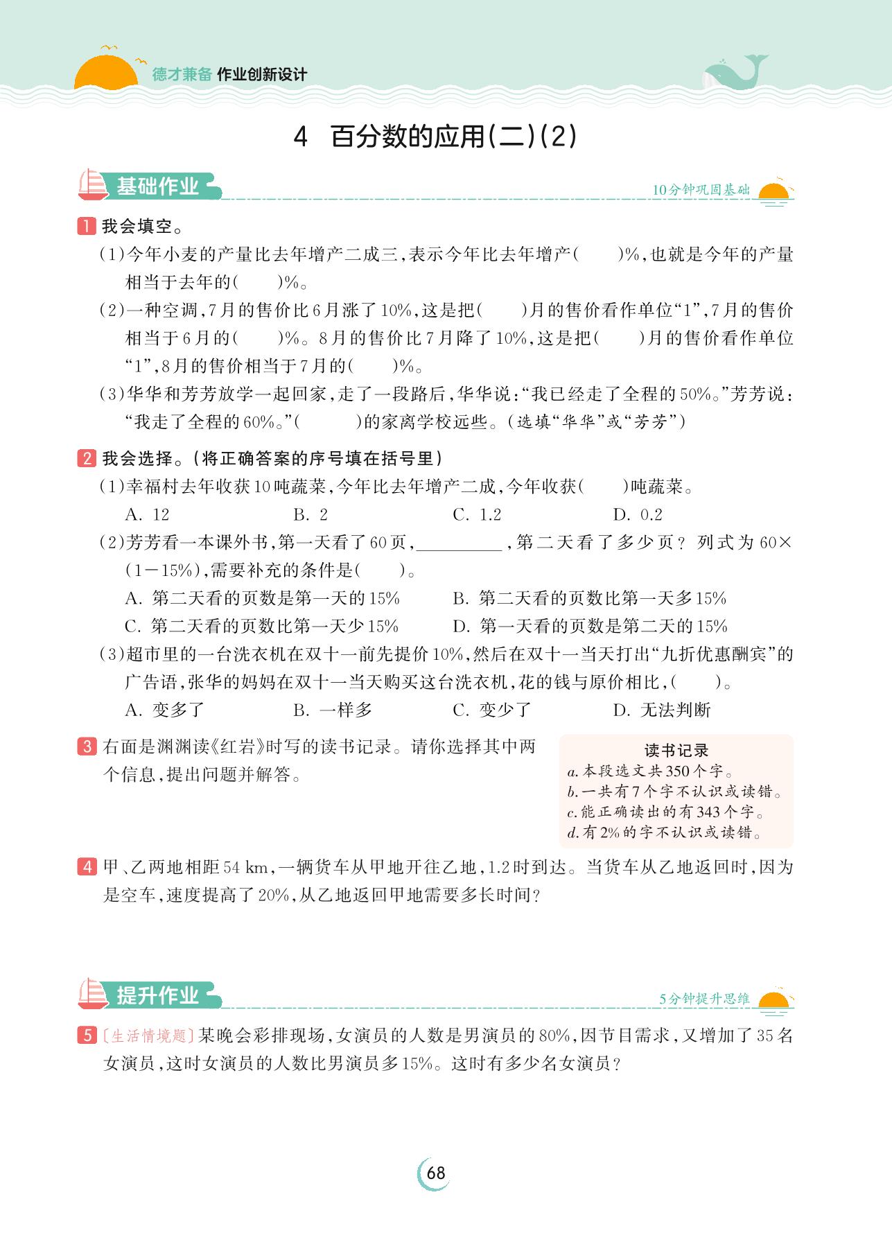 2023上册六年级数学北师版 第七单元 百分数的应用——4 百分数的应用(二)(2)