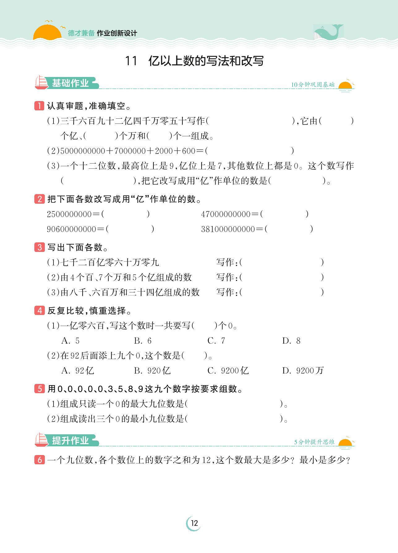 2023上册四年级数学人教版 第一单元 大数的认识——11 亿以上数的写法和改写