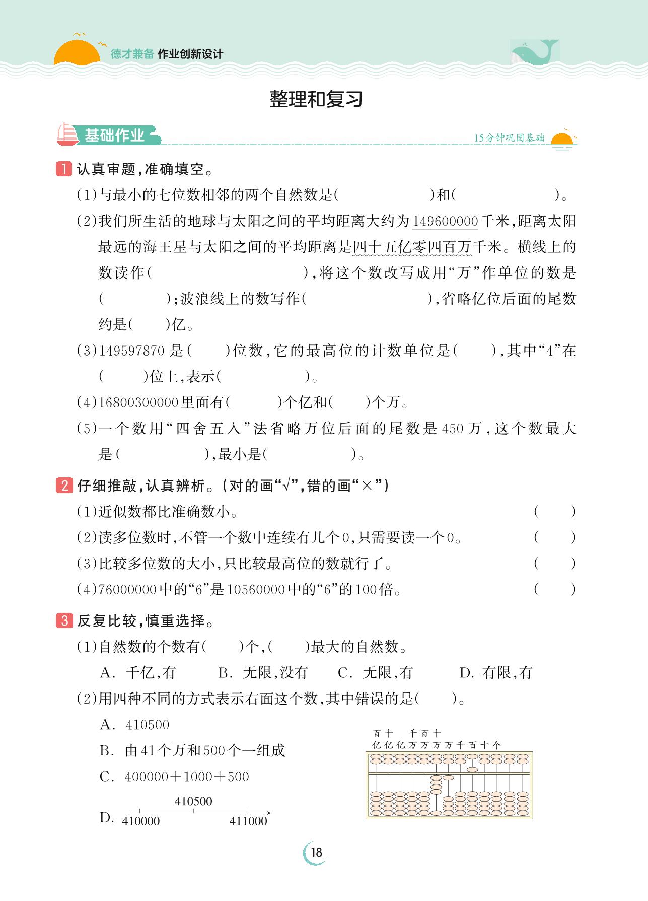2023上册四年级数学人教版 第一单元 大数的认识——整理和复习