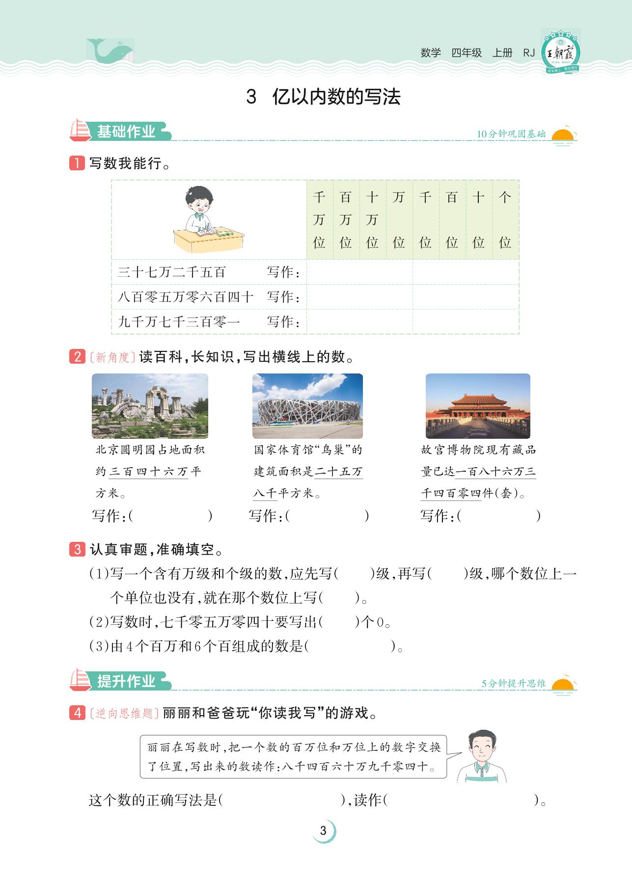 2023上册四年级数学人教版 第一单元 大数的认识——3 亿以内数的写法