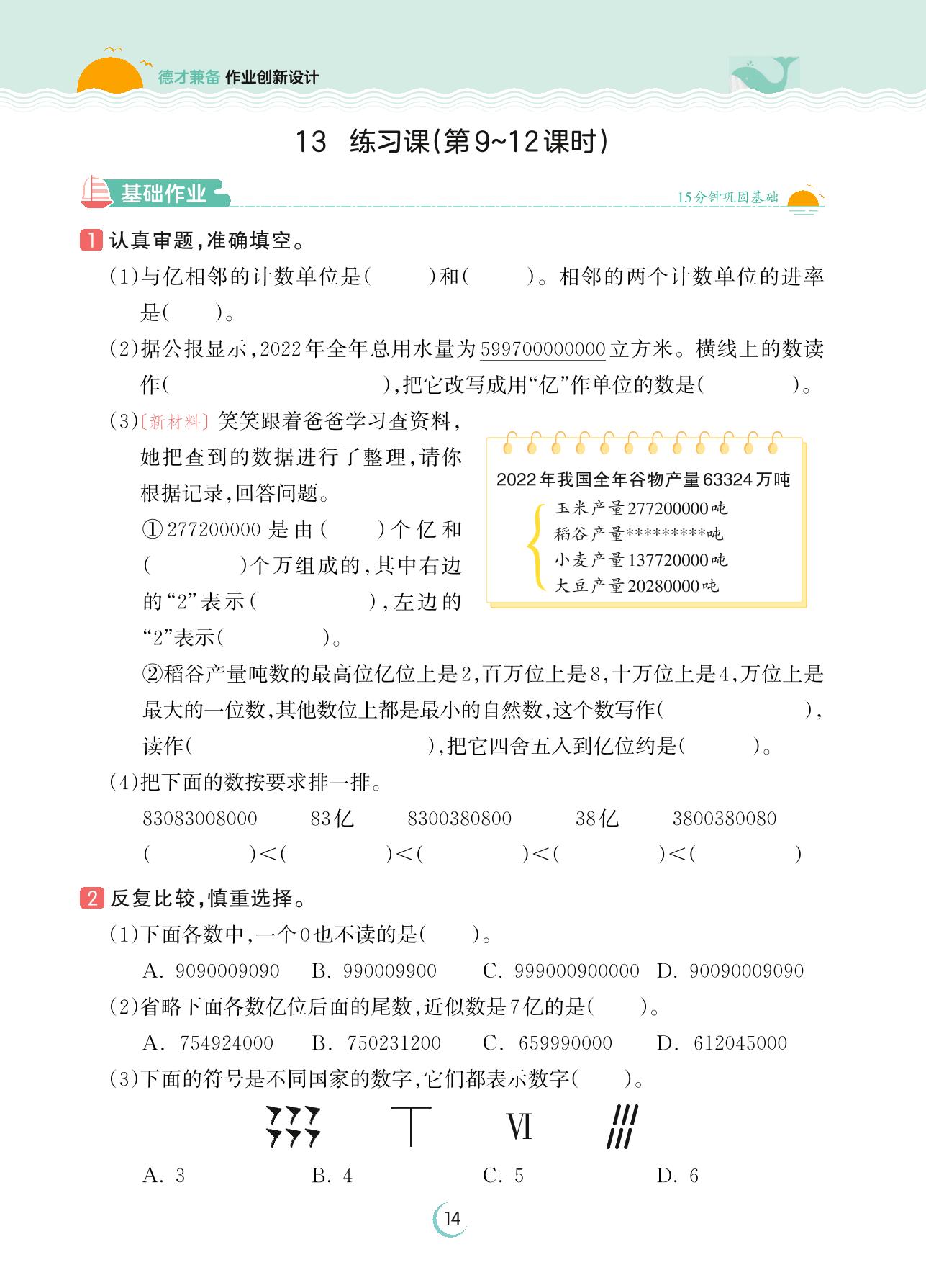 2023上册四年级数学人教版 第一单元 大数的认识——13 练习课(第9~12课时)