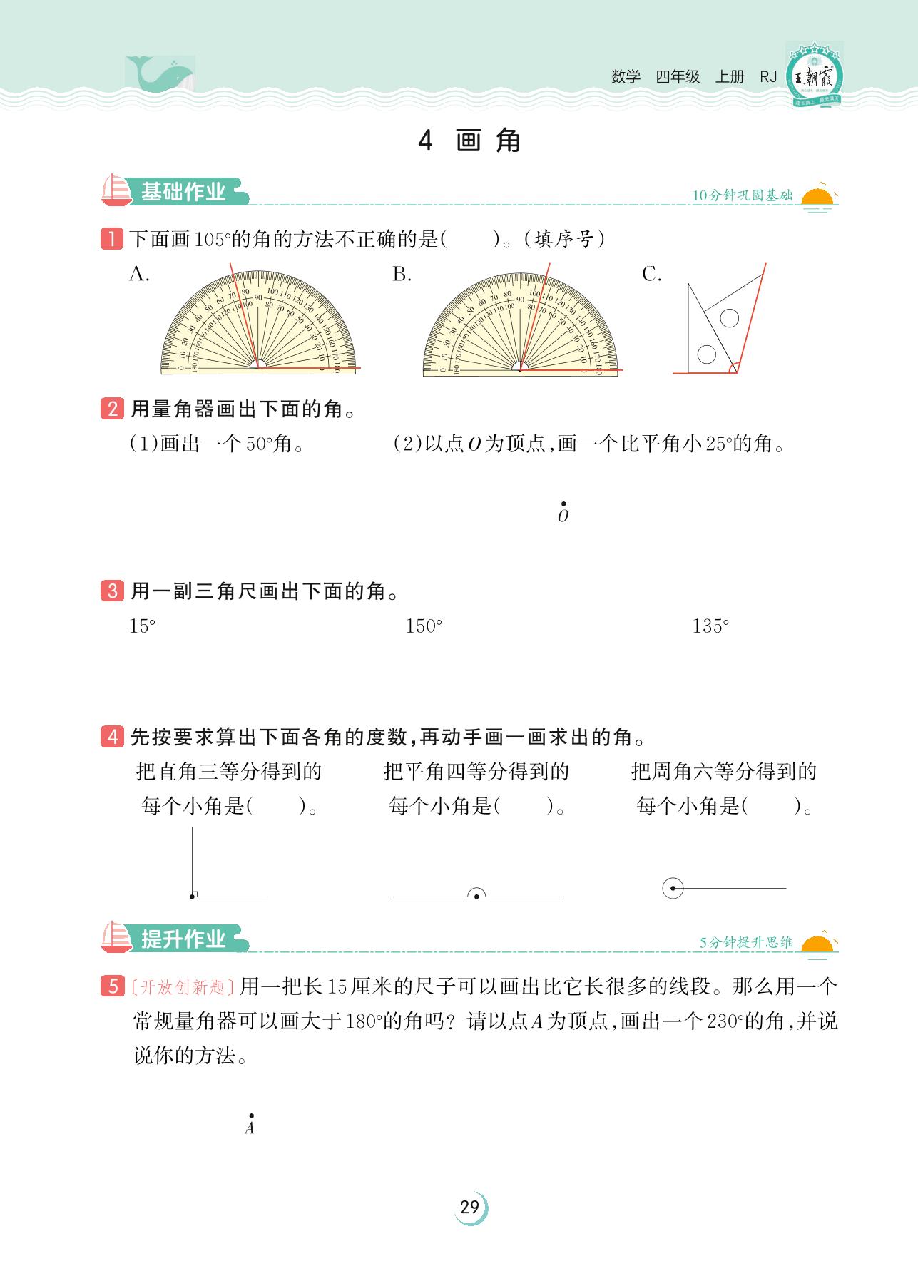 2023上册四年级数学人教版 第三单元 角的度量——4 画角