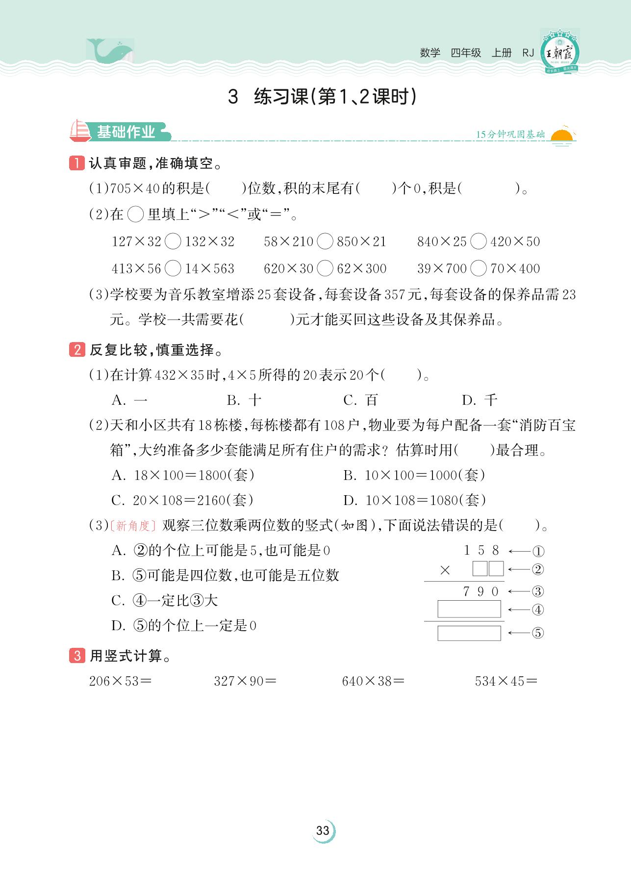 2023上册四年级数学人教版 第四单元 三位数乘两位数——3 练习课(第1、2课时)
