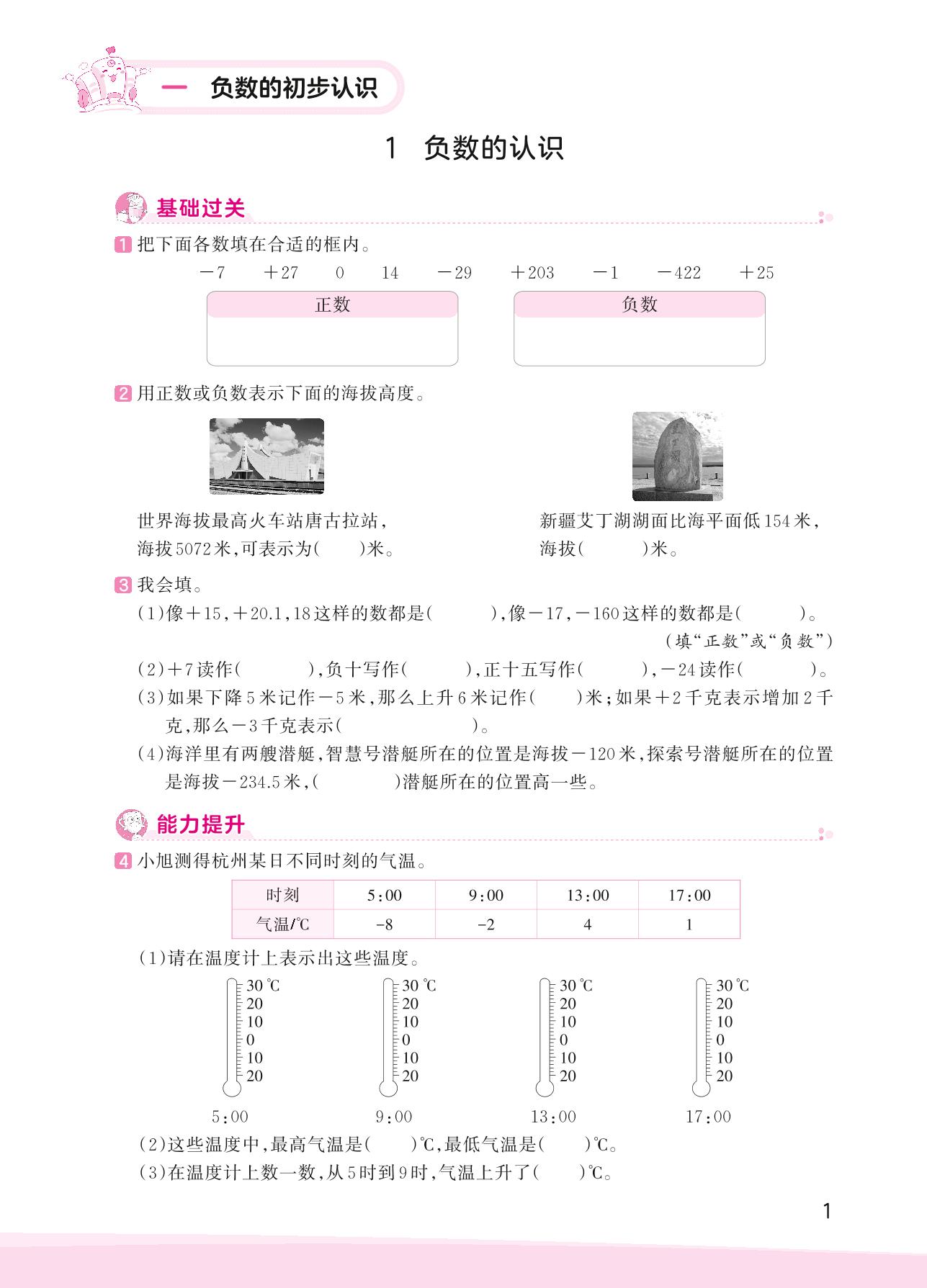 2023上册五年级数学苏教版 一 负数的初步认识——1 负数的认识