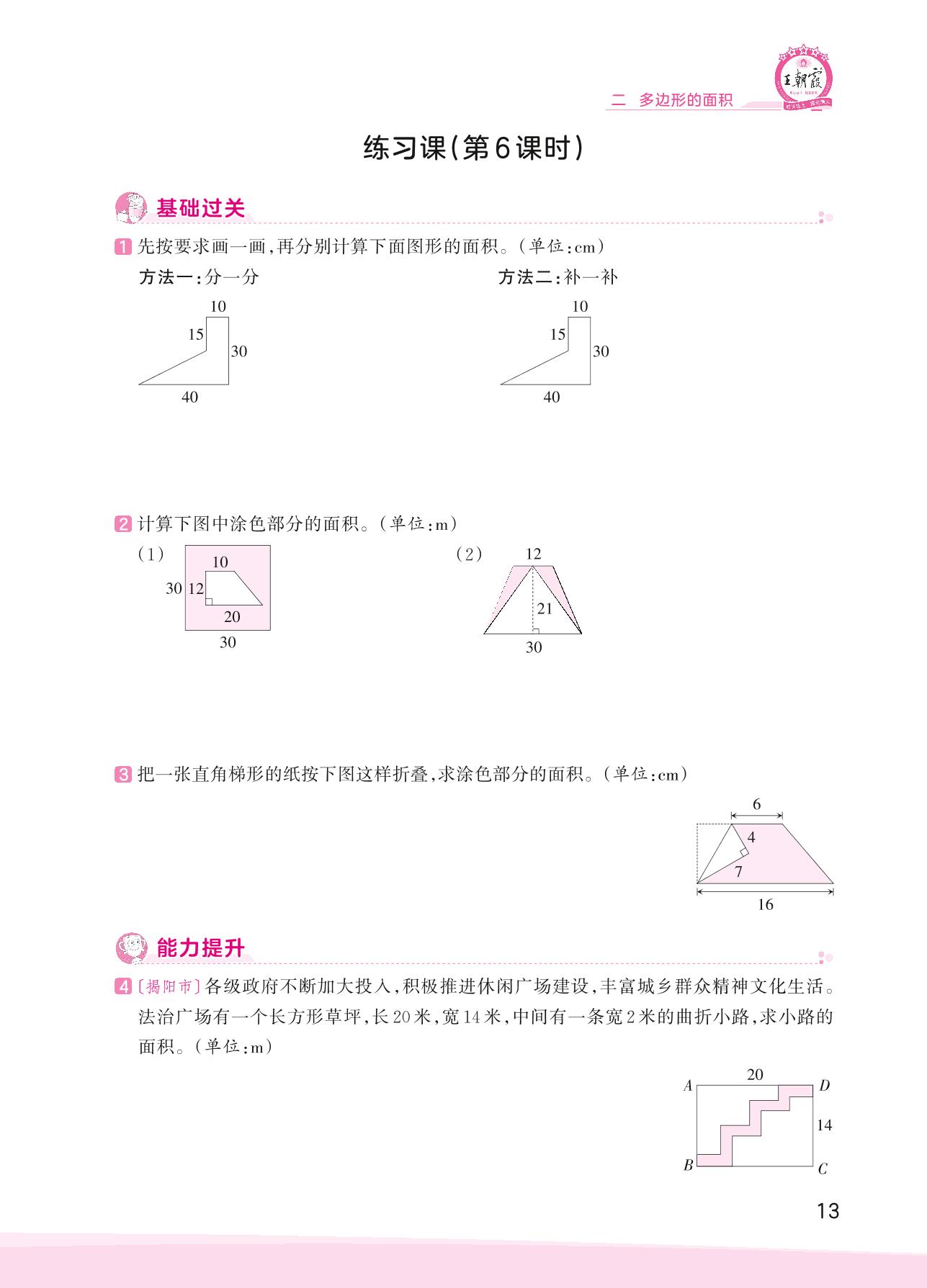 2023上册五年级数学苏教版 二 多边形的面积 ——练习课(第6课时)