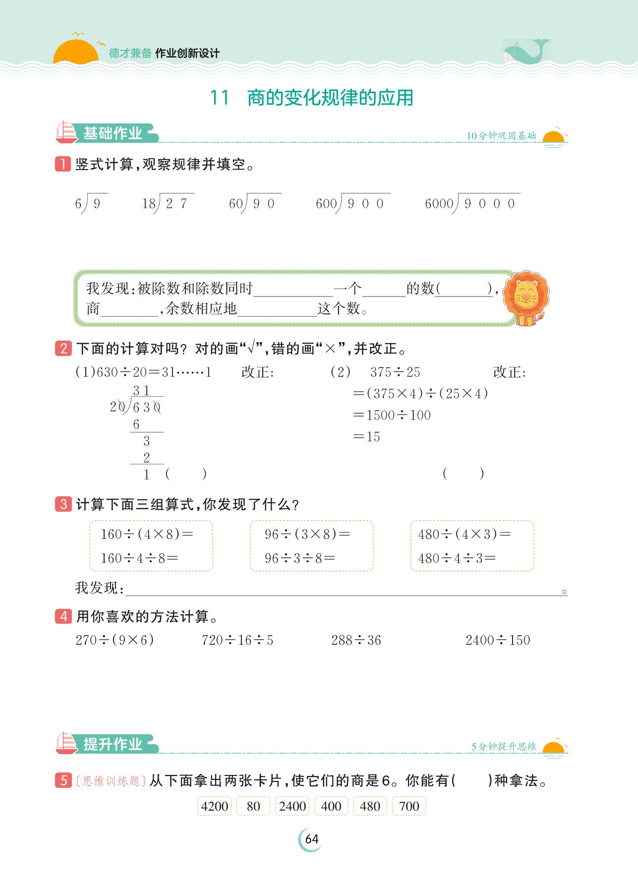 2023上册四年级数学人教版 第六单元 除数是两位数的除法——11 商的变化规律的应用