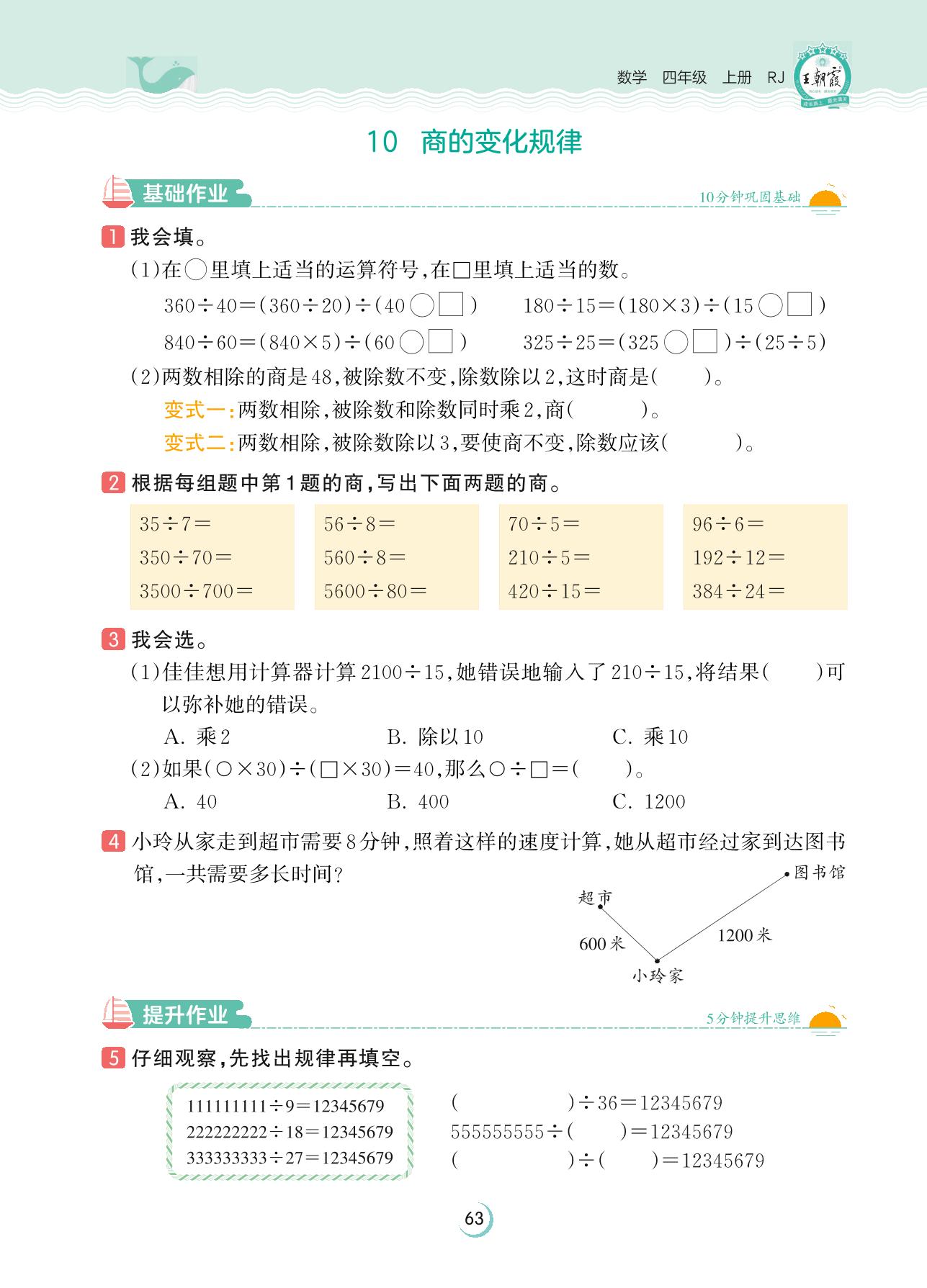 2023上册四年级数学人教版 第六单元 除数是两位数的除法——10 商的变化规律