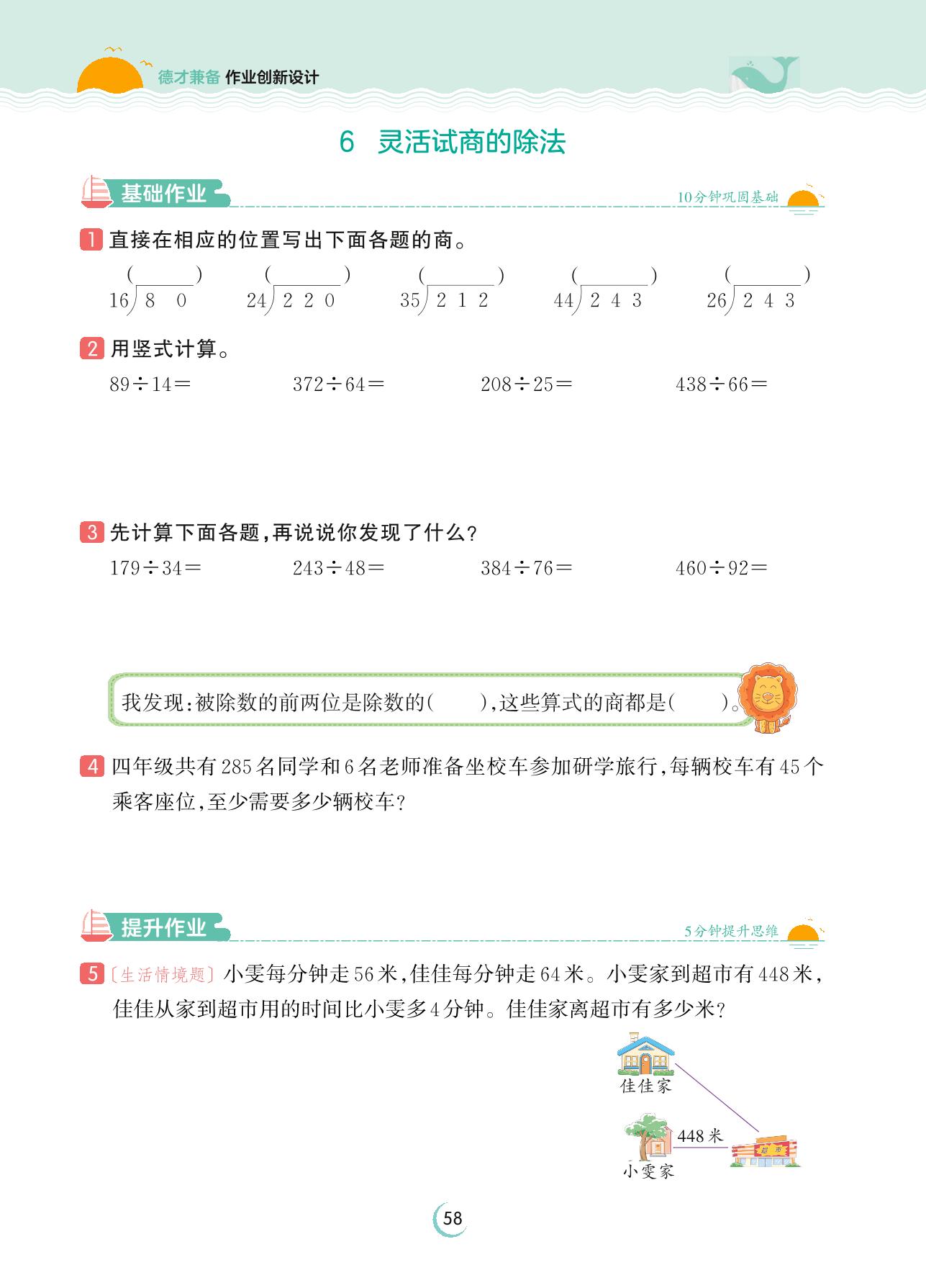 2023上册四年级数学人教版 第六单元 除数是两位数的除法——6 灵活试商的除法