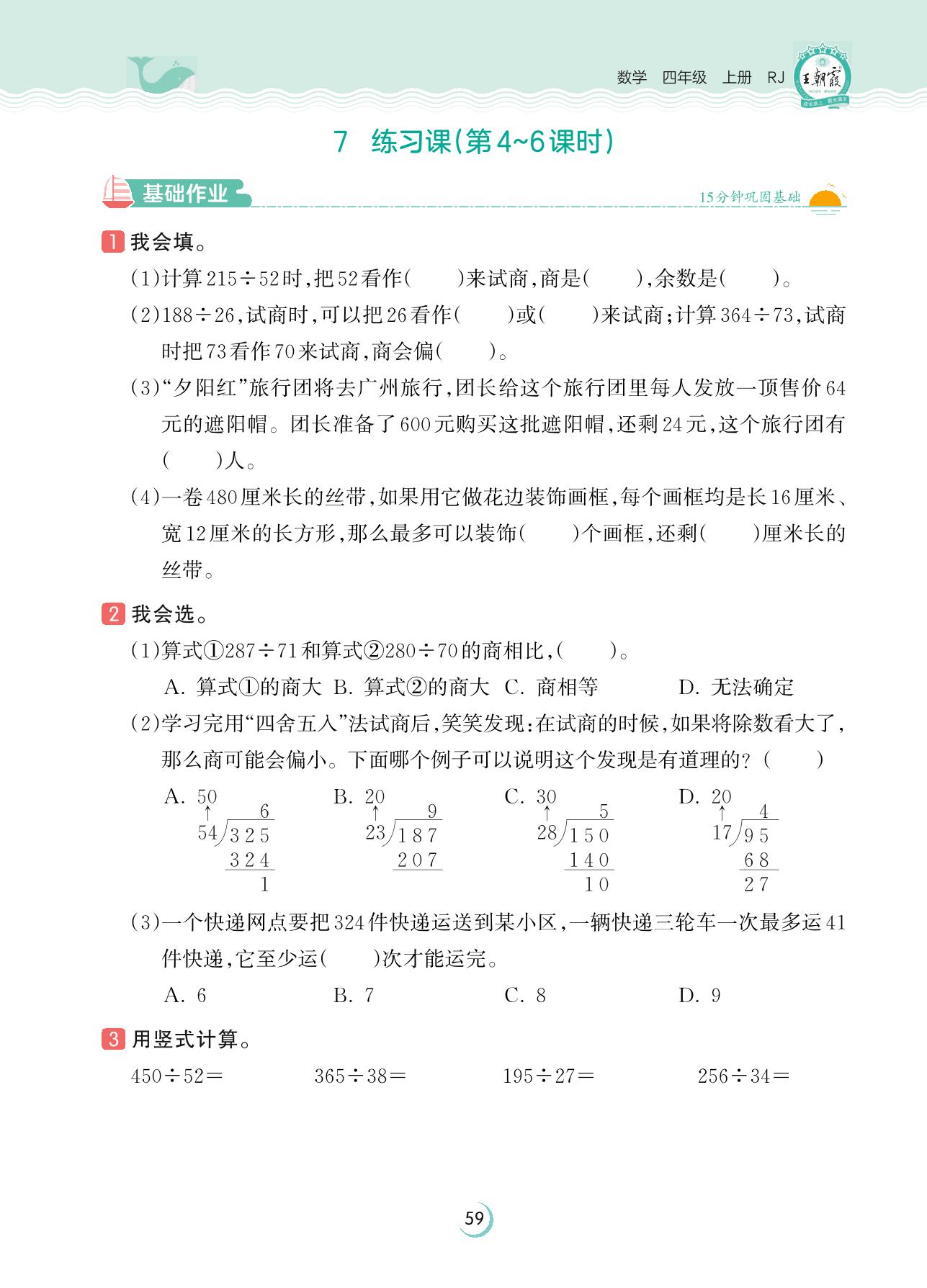 2023上册四年级数学人教版 第六单元 除数是两位数的除法——7 练习课(第4~6课时)