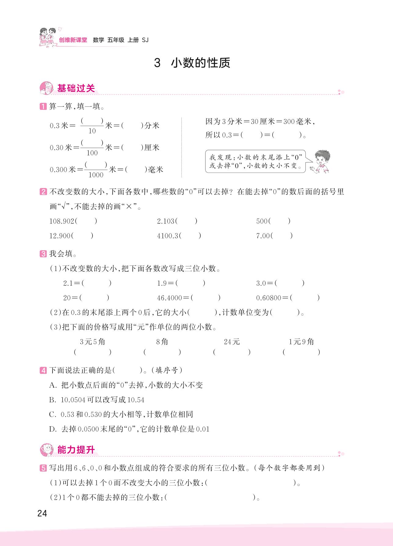 2023上册五年级数学苏教版 三 小数的意义和性质——3 小数的性质