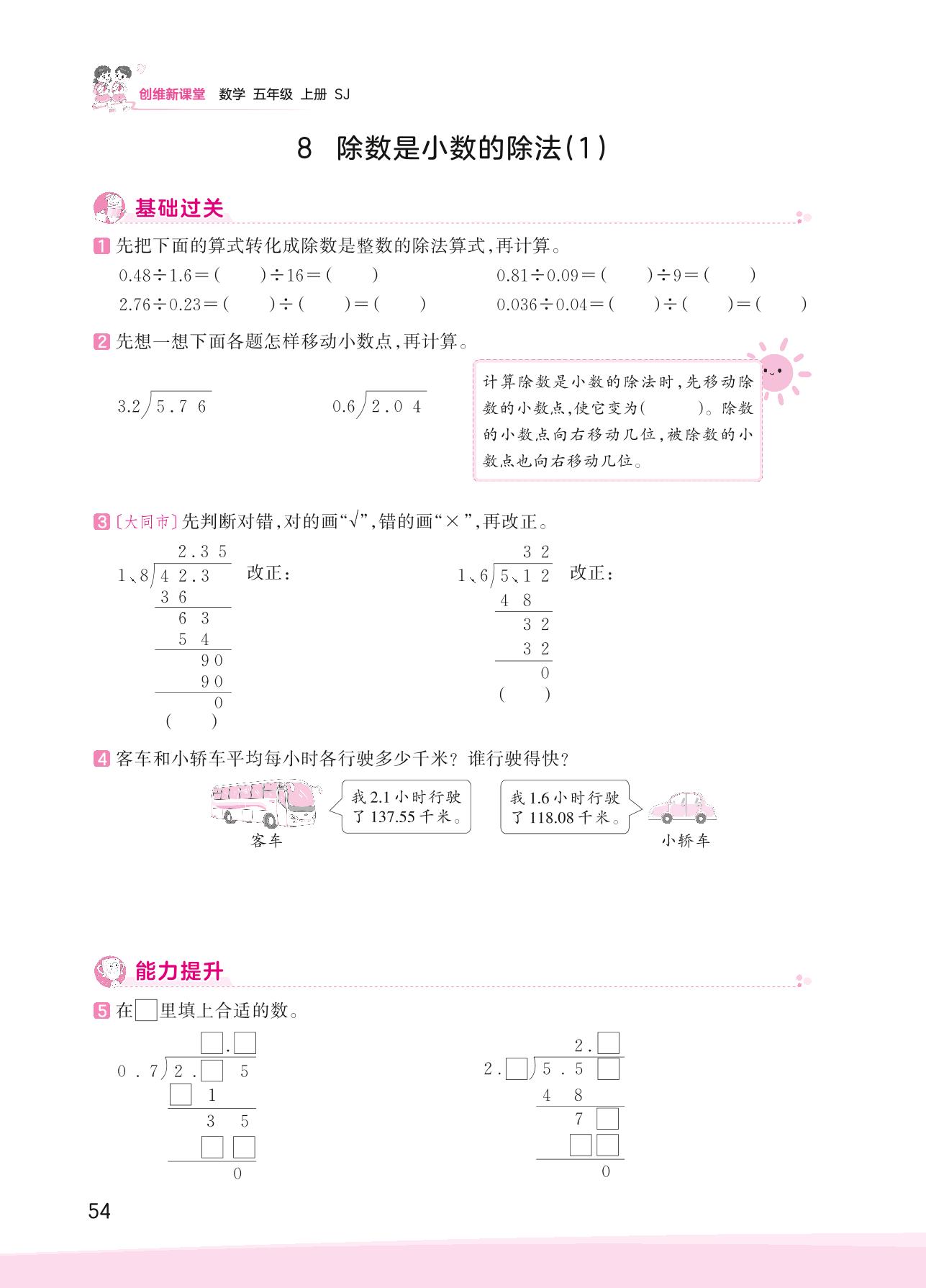 2023上册五年级数学苏教版 五 小数乘法和除法——8 除数是小数的除法(1)