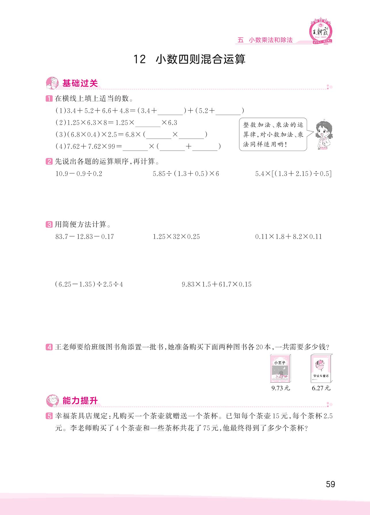 2023上册五年级数学苏教版 五 小数乘法和除法——12 小数四则混合运算