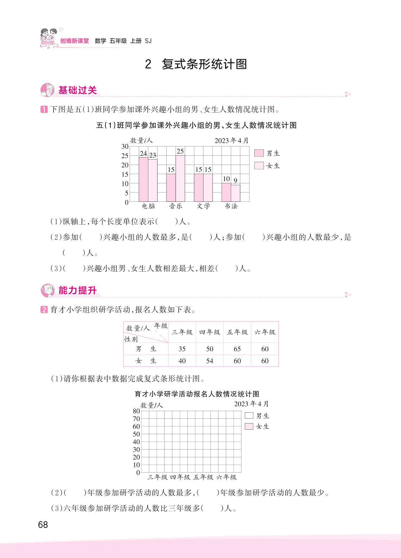 2023上册五年级数学苏教版 六 统计表和条形统计图(二)——2 复式条形统计图