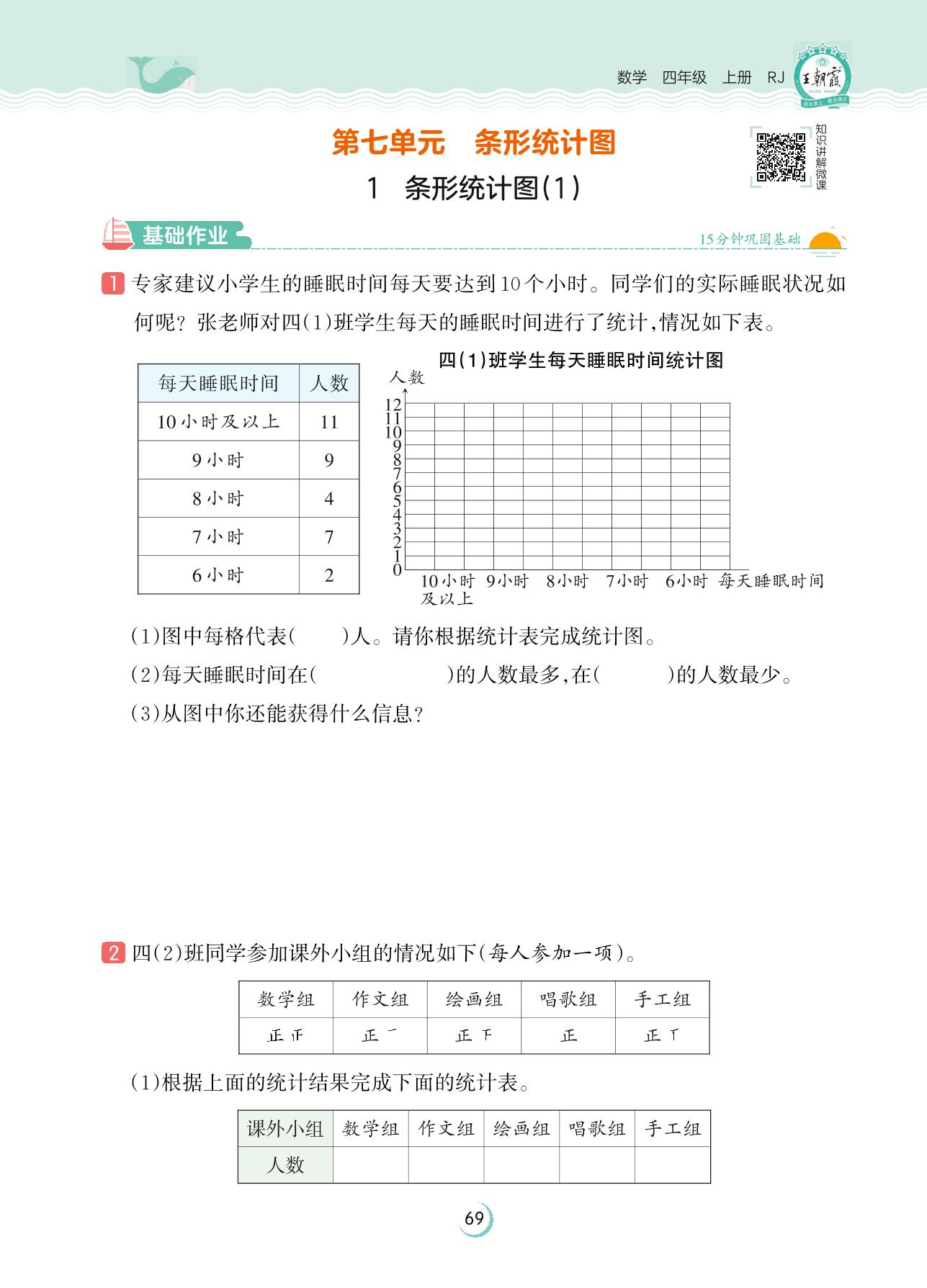 2023上册四年级数学人教版 第七单元 条形统计图——1 条形统计图(1)