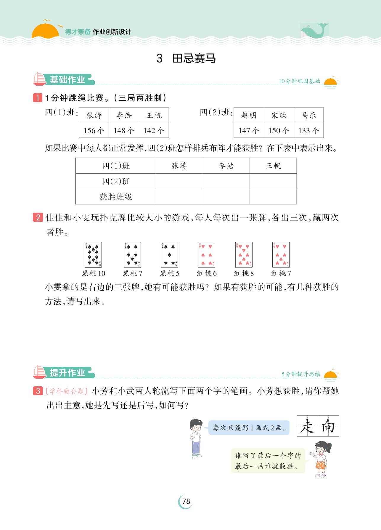 2023上册四年级数学人教版 第八单元 数学广角 优化——3 田忌赛马