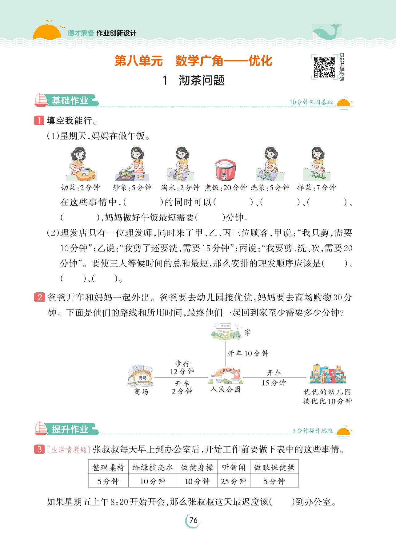 2023上册四年级数学人教版 第八单元 数学广角 优化——1 沏茶问题