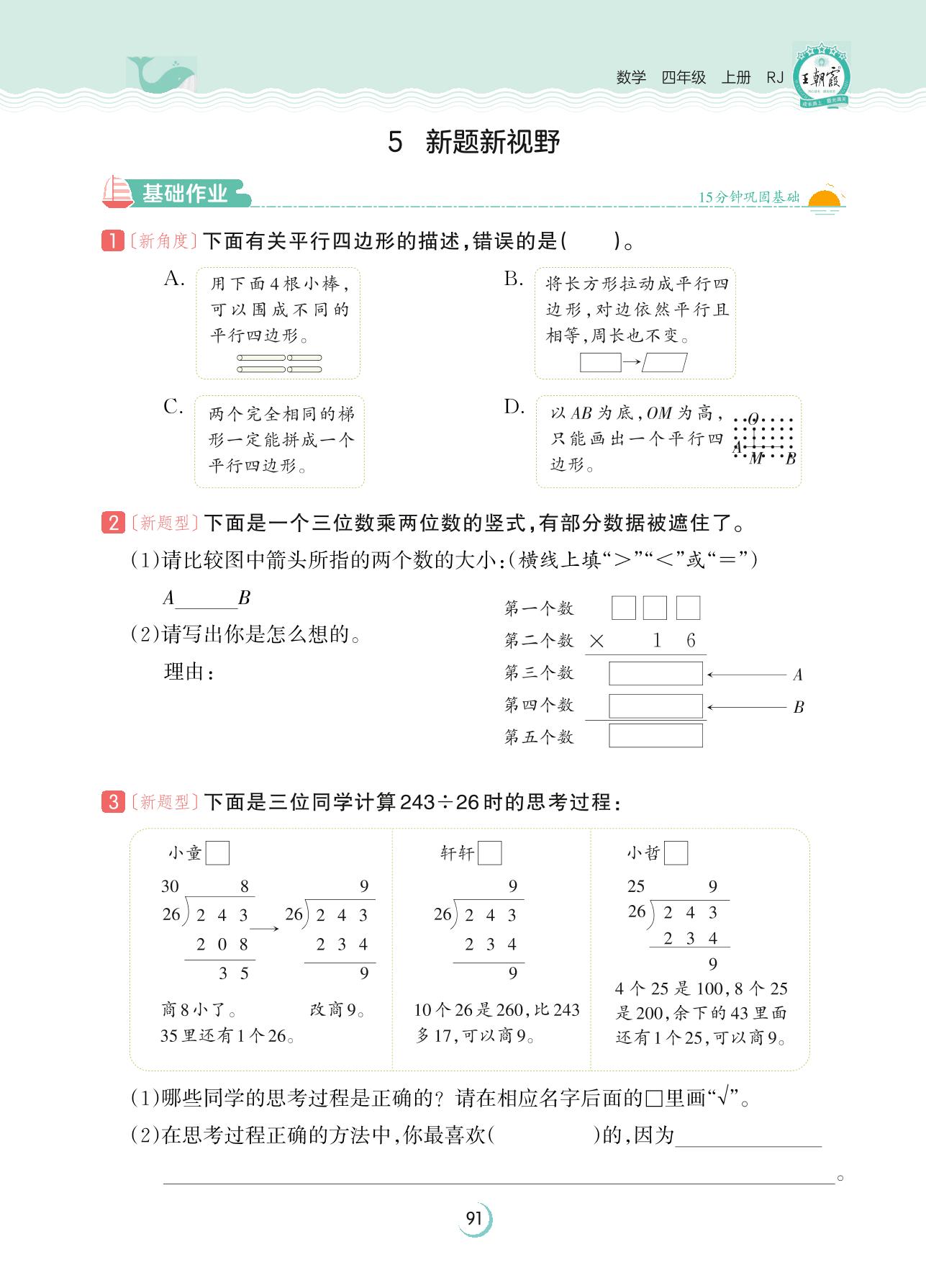 2023上册四年级数学人教版 第九单元 总复习——5 新题新视野
