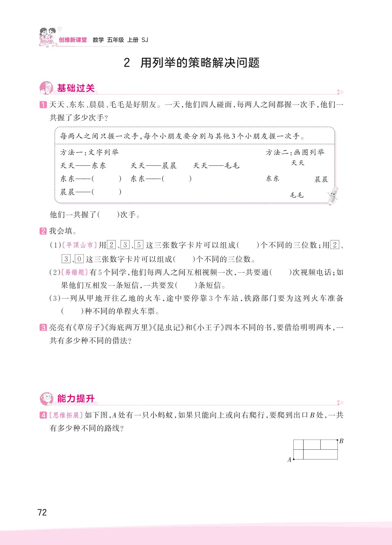 2023上册五年级数学苏教版 七 解决问题的策略——2 用列举的策略解决问题