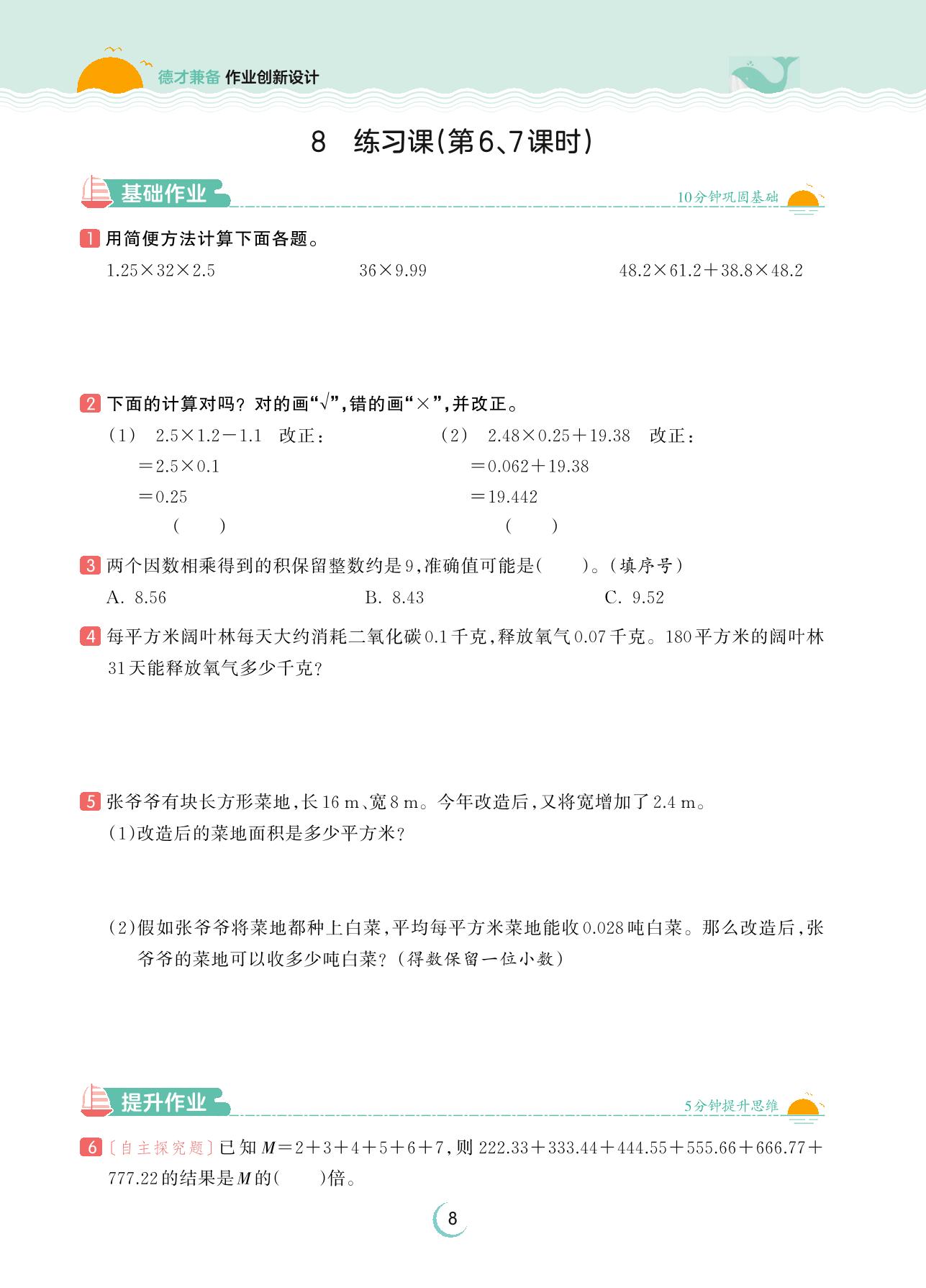 2023上册五年级数学人教版 第一单元 小数乘法——8 练习课(第6、7课时)