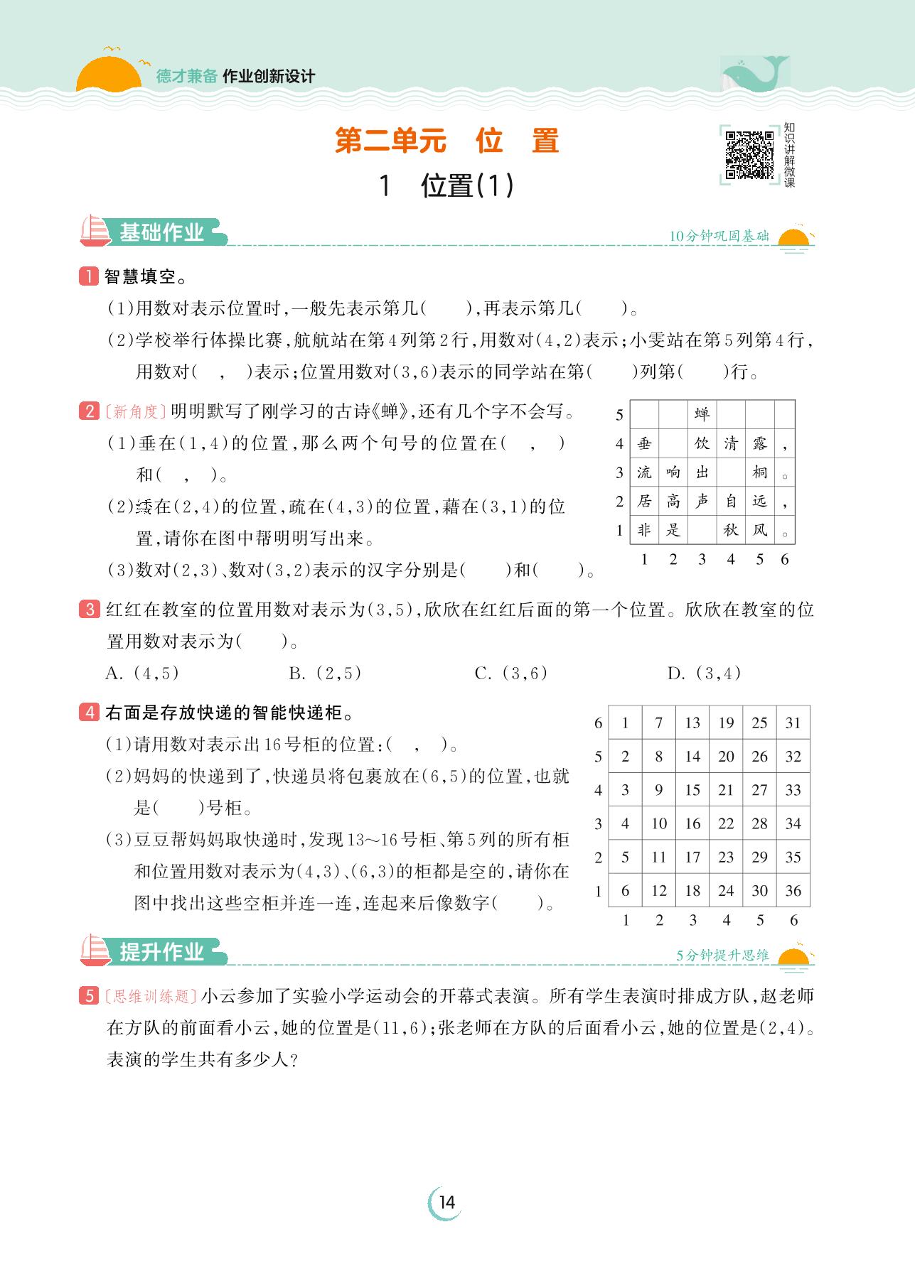 2023上册五年级数学人教版 第二单元 位置——1 位置(1)