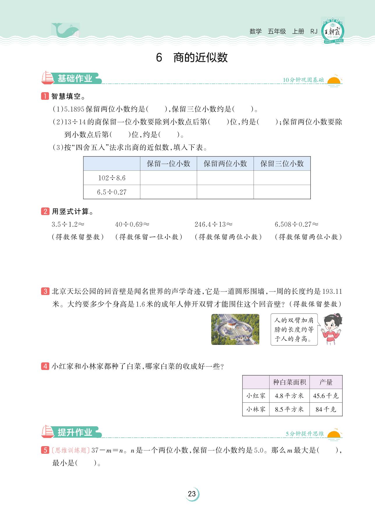 2023上册五年级数学人教版 第三单元 小数除法——6 商的近似数