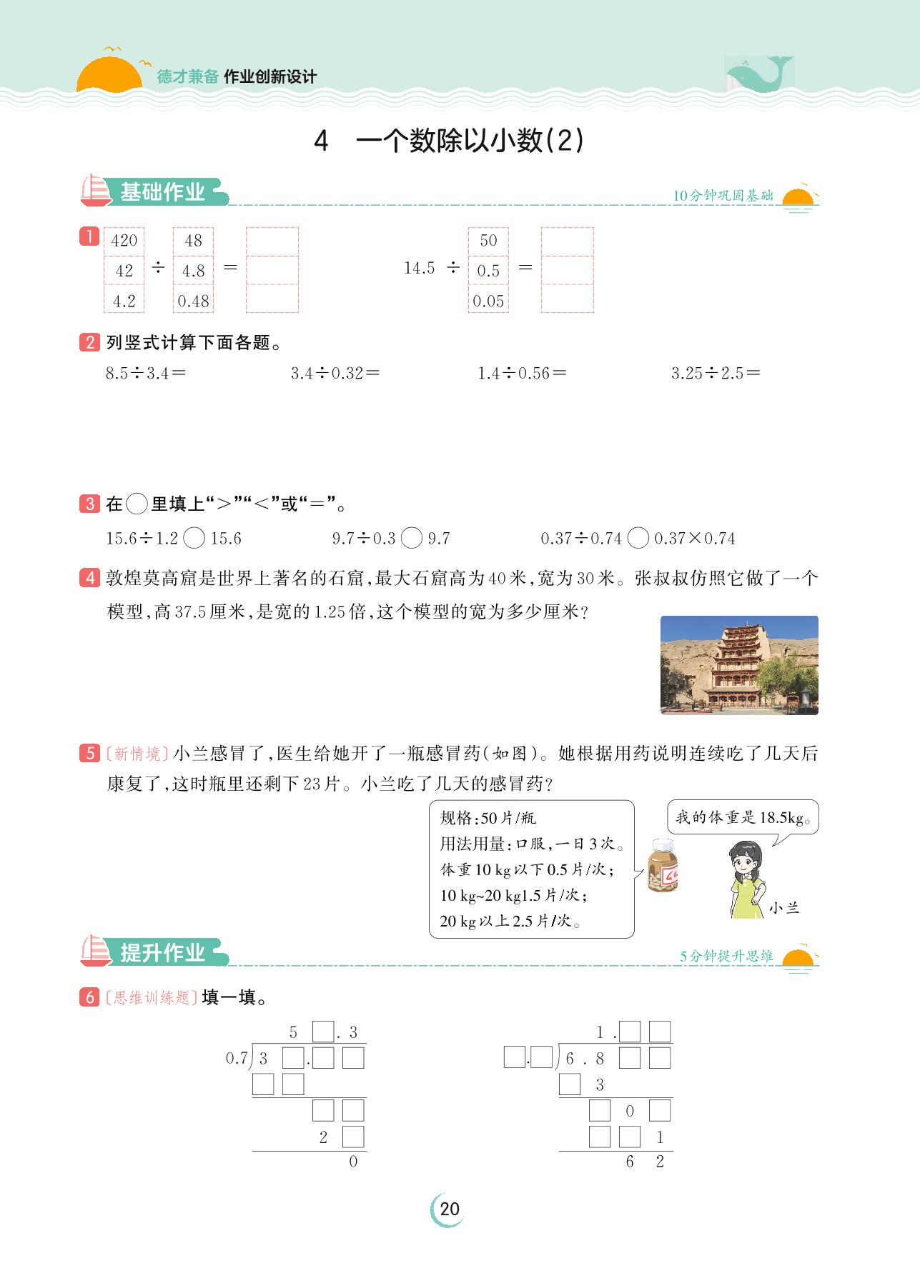 2023上册五年级数学人教版 第三单元 小数除法——4 一个数除以小数(2)