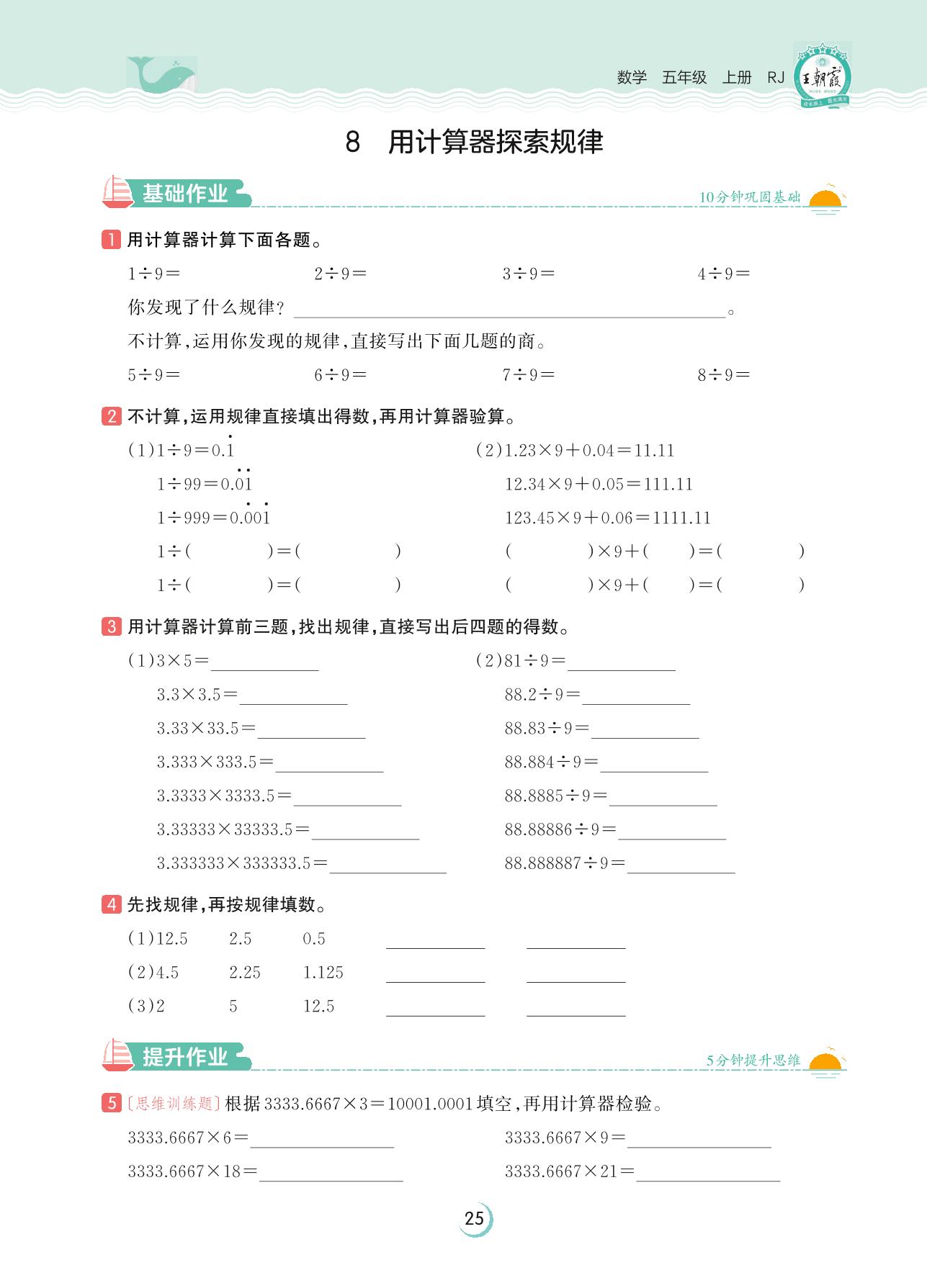 2023上册五年级数学人教版 第三单元 小数除法——8 用计算器探索规律