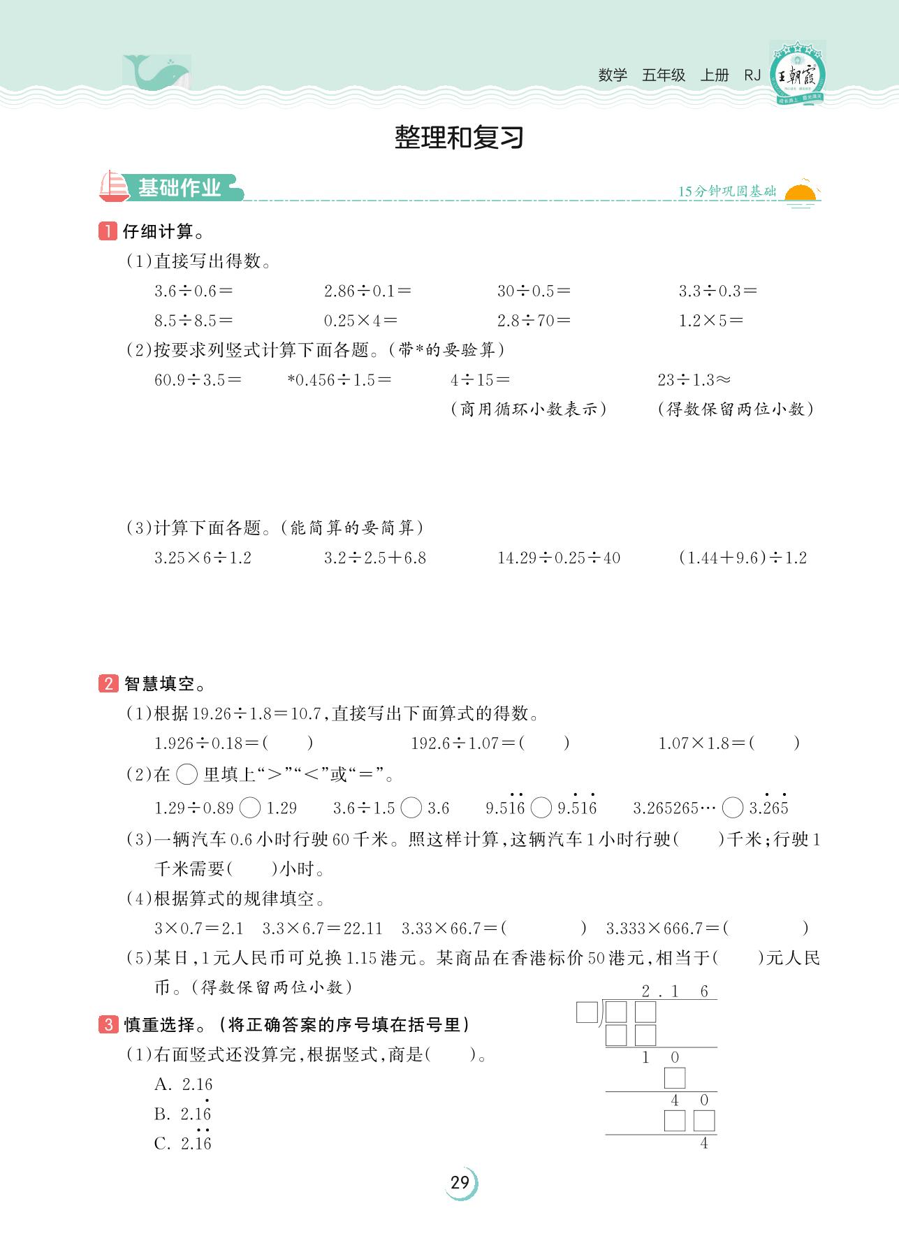 2023上册五年级数学人教版 第三单元 小数除法——整理和复习