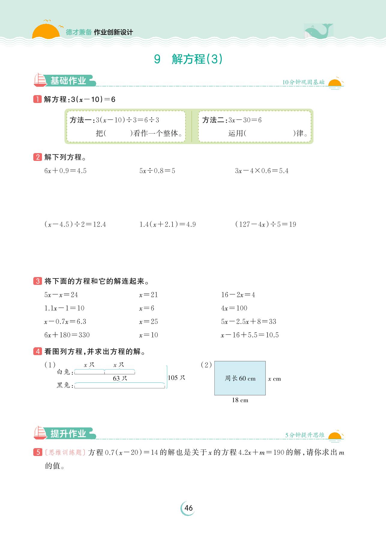 2023上册五年级数学人教版 第五单元 简易方程——9 解方程(3)