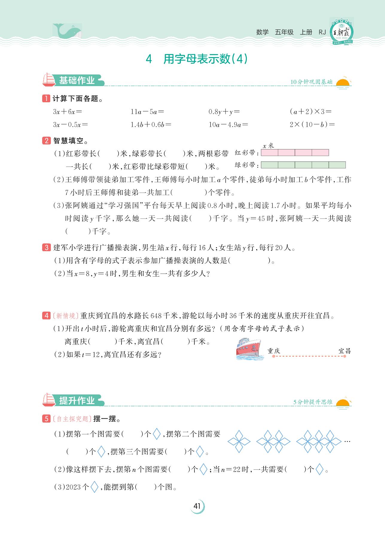 2023上册五年级数学人教版 第五单元 简易方程——4 用字母表示数(4)