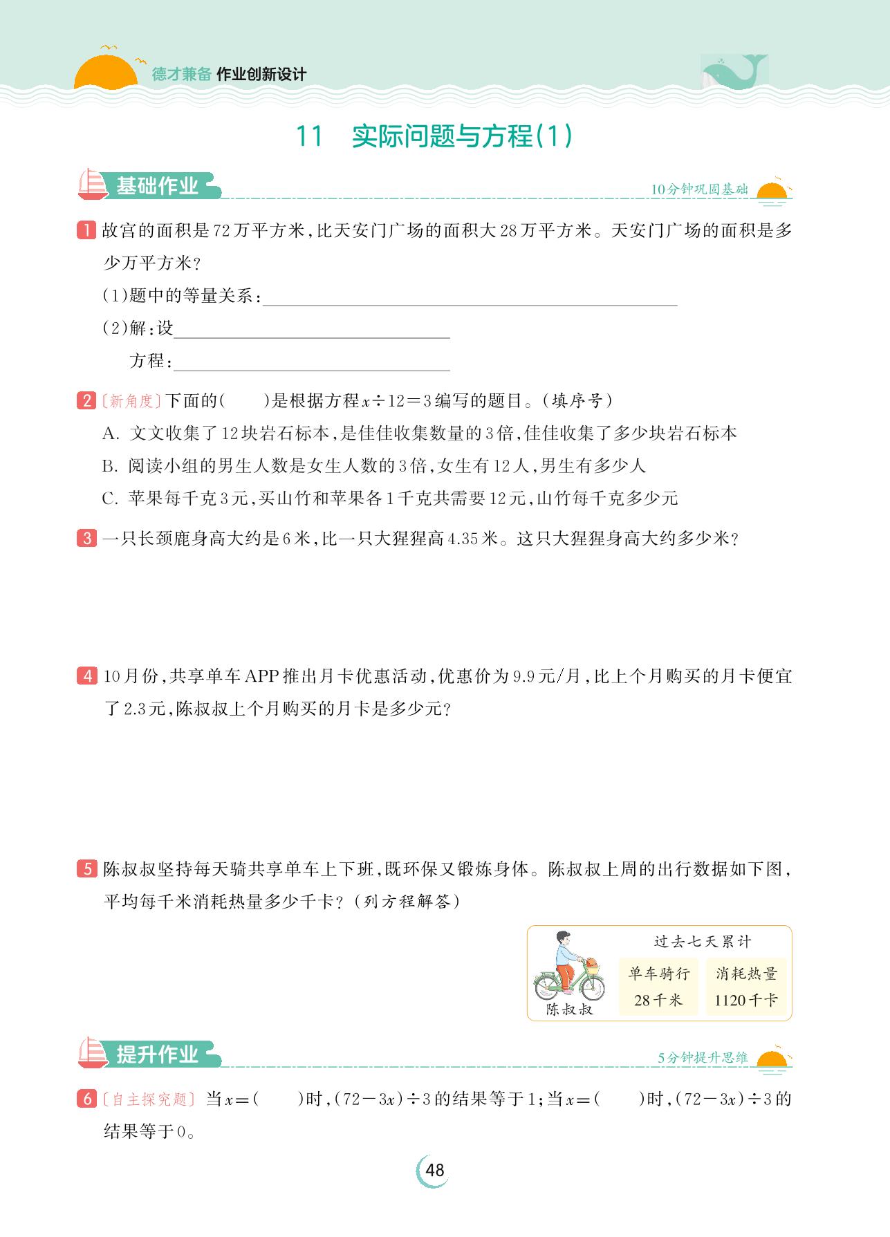 2023上册五年级数学人教版 第五单元 简易方程——11 实际问题与方程(1)