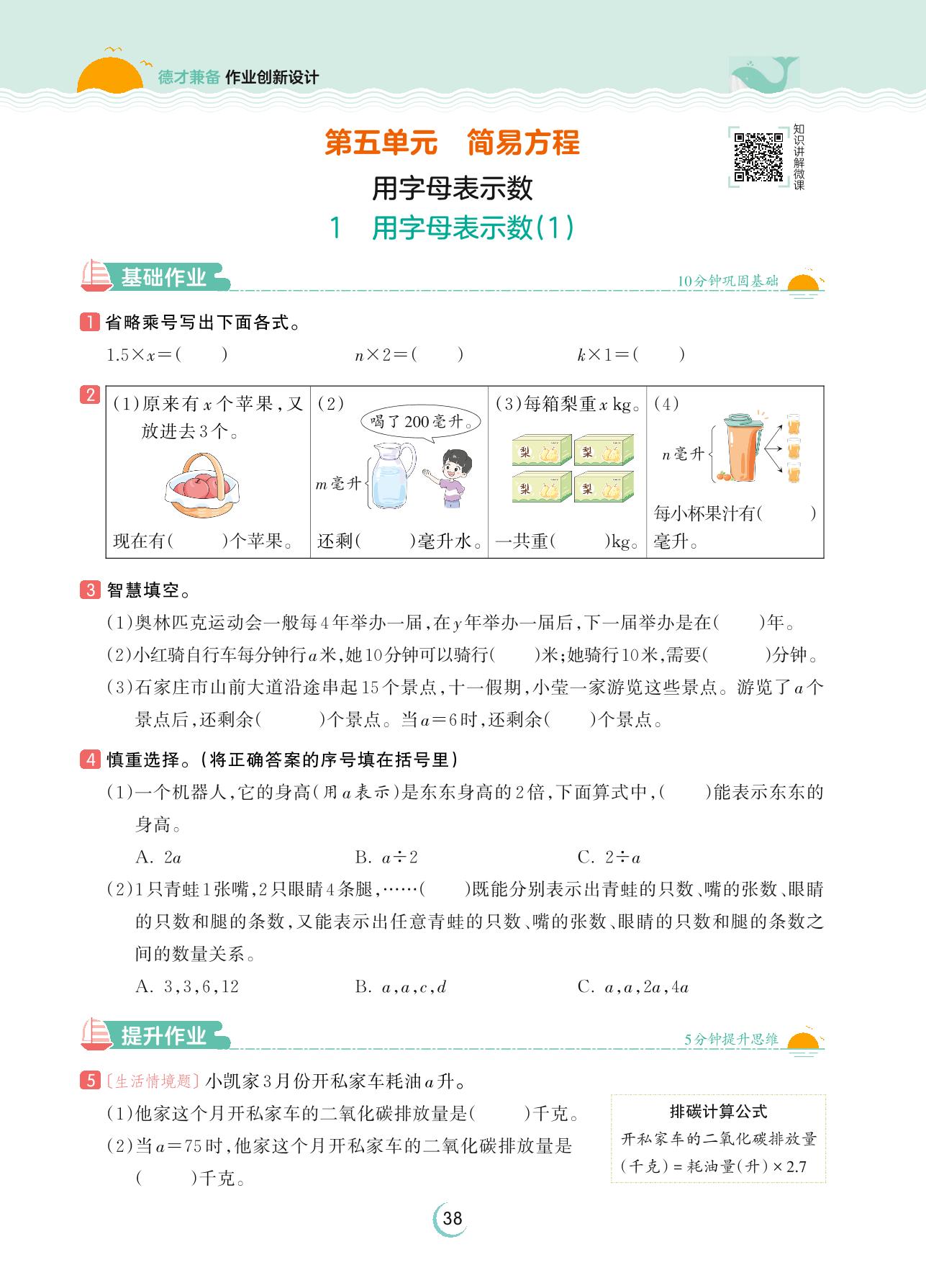 2023上册五年级数学人教版 第五单元 简易方程——1 用字母表示数(1)