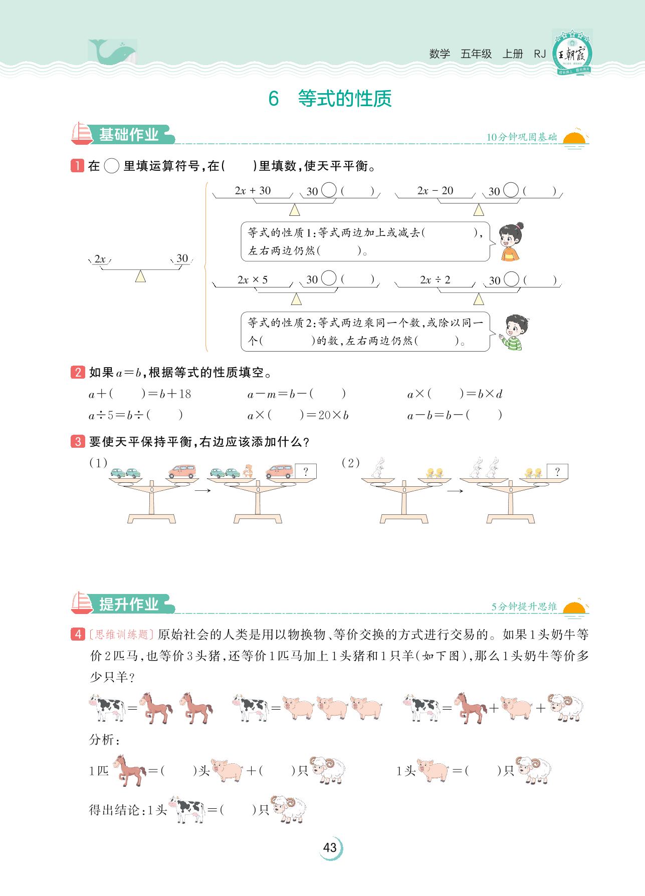 2023上册五年级数学人教版 第五单元 简易方程——6 等式的性质