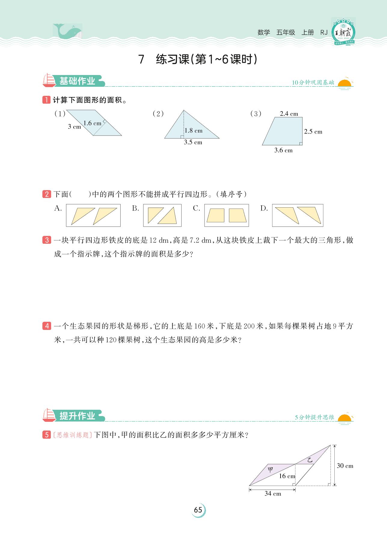 2023上册五年级数学人教版 第六单元 多边形的面积——7 练习课(第1~6课时)