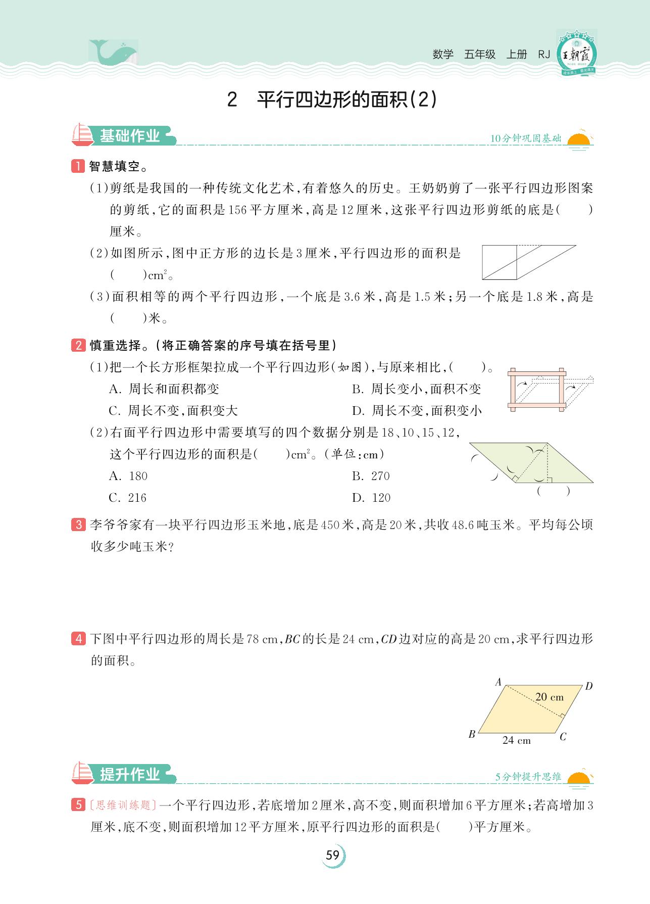 2023上册五年级数学人教版 第六单元 多边形的面积——2 平行四边形的面积(2)