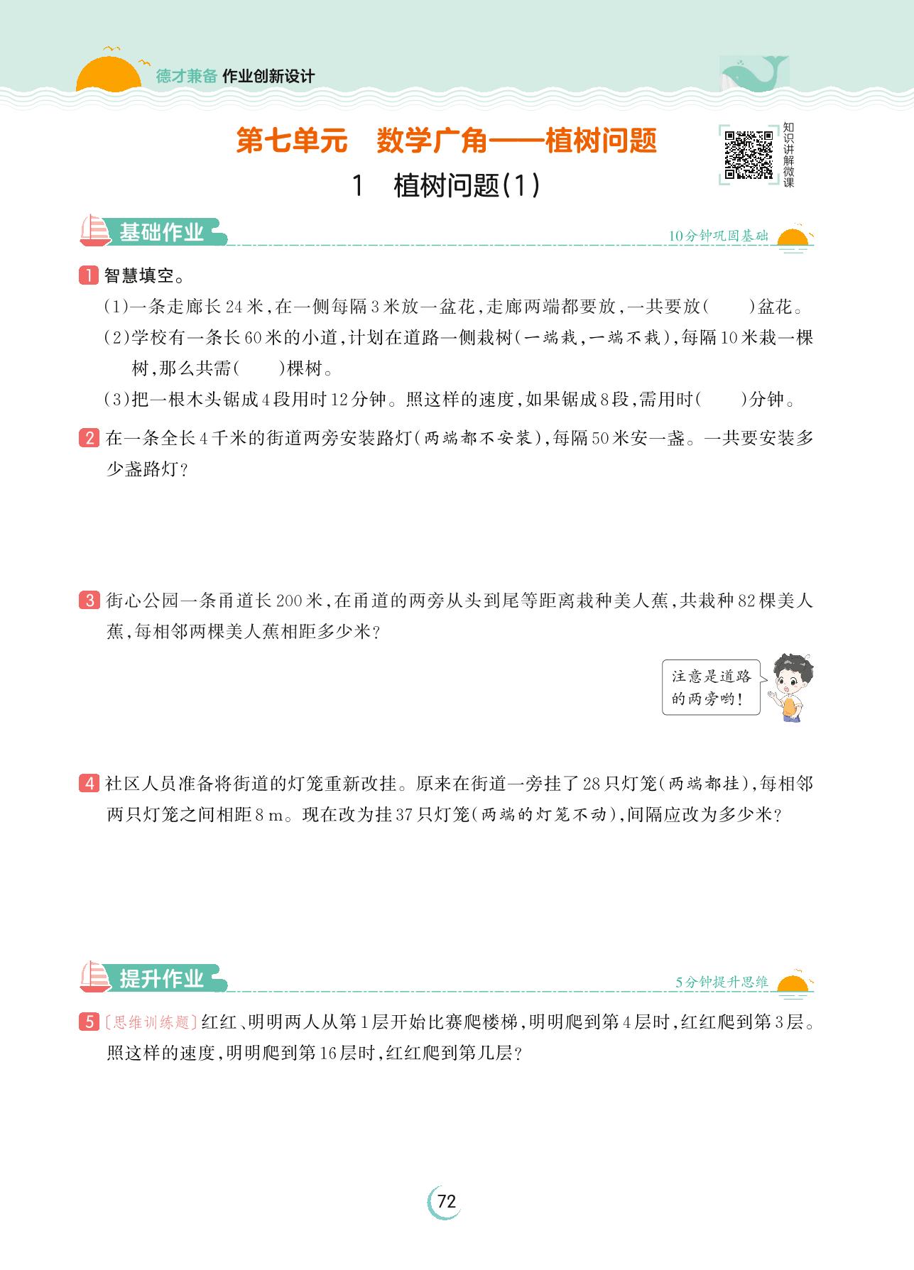 2023上册五年级数学人教版 第七单元 数学广角 植树问题——1 植树问题(1)