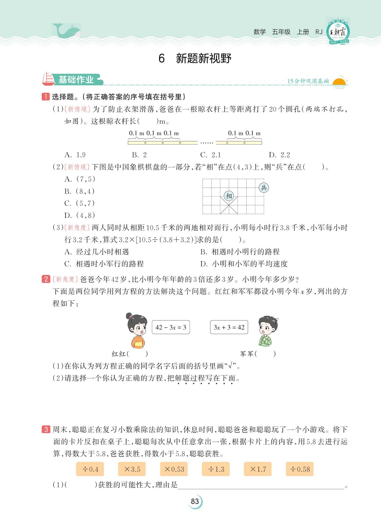 2023上册五年级数学人教版 第八单元 总复习——6 新题新视野