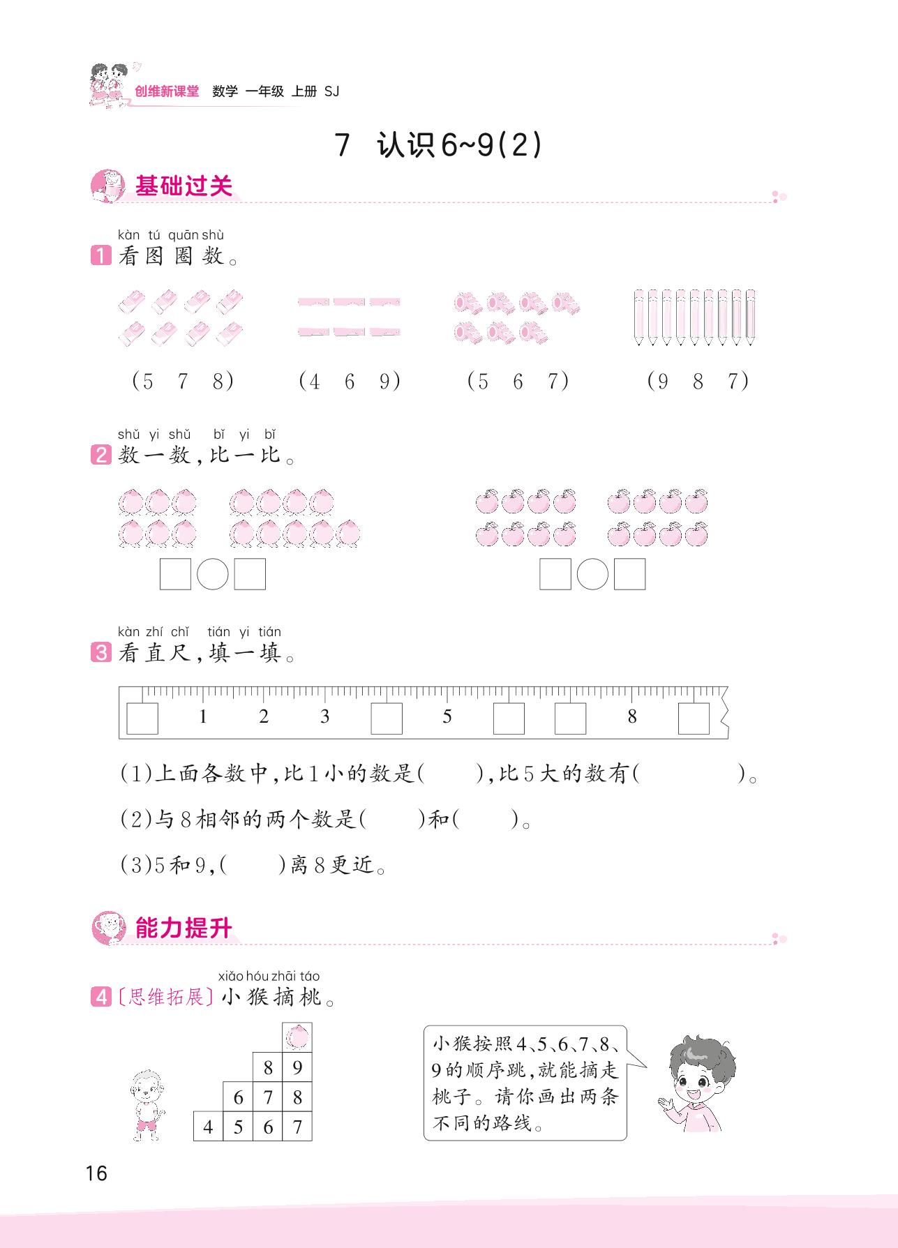 2023上册一年级数学苏教版 五 认识10以内的数——7 认识6~9(2)