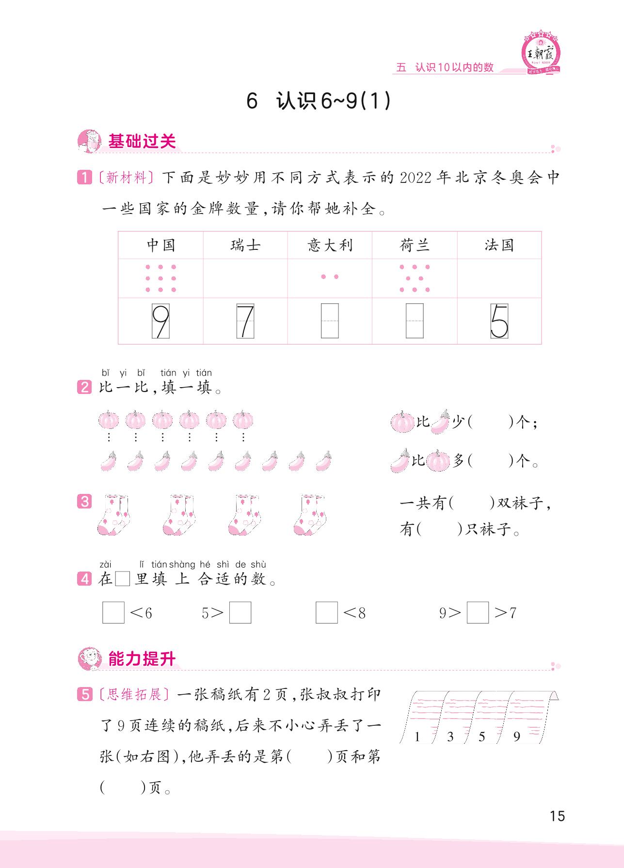 2023上册一年级数学苏教版 五 认识10以内的数——6 认识6~9(1)