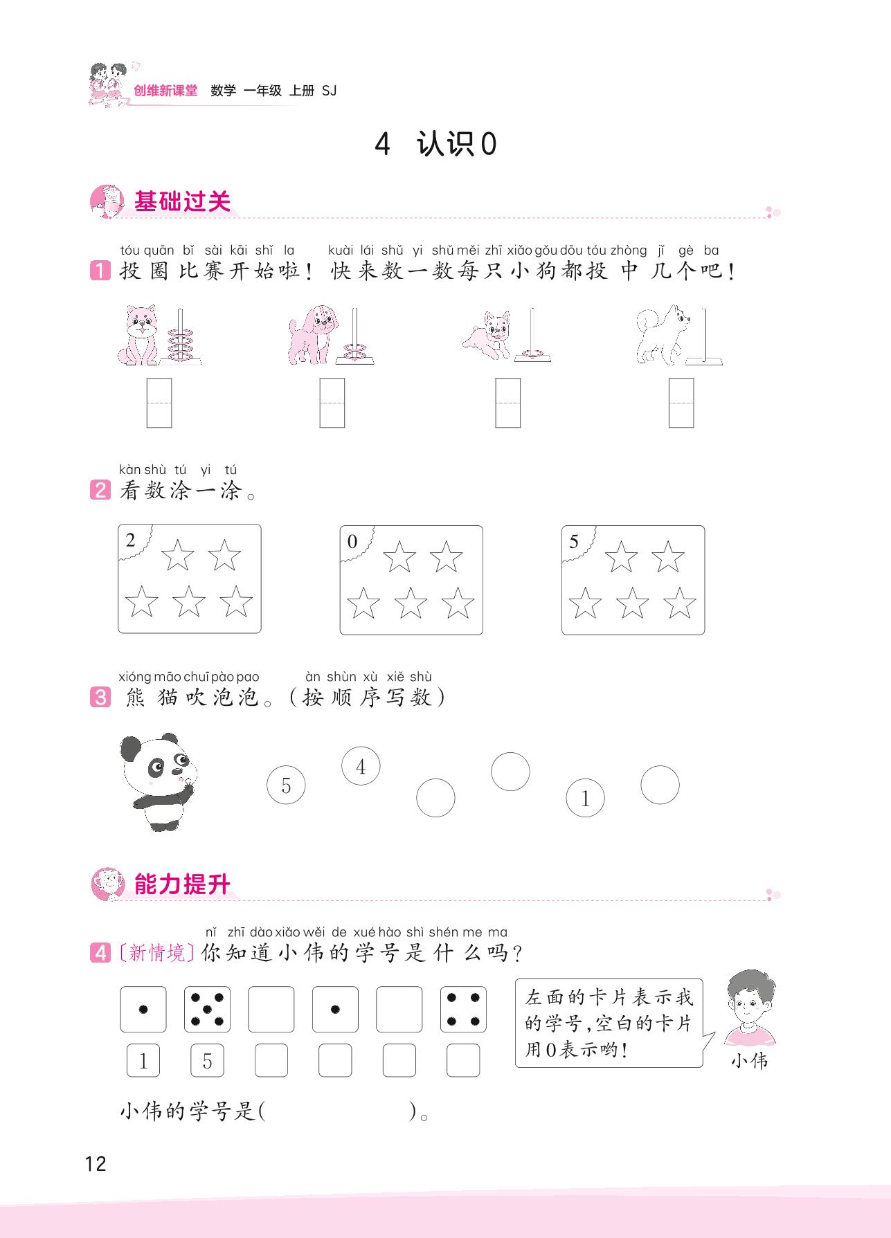 2023上册一年级数学苏教版 五 认识10以内的数——4 认识0