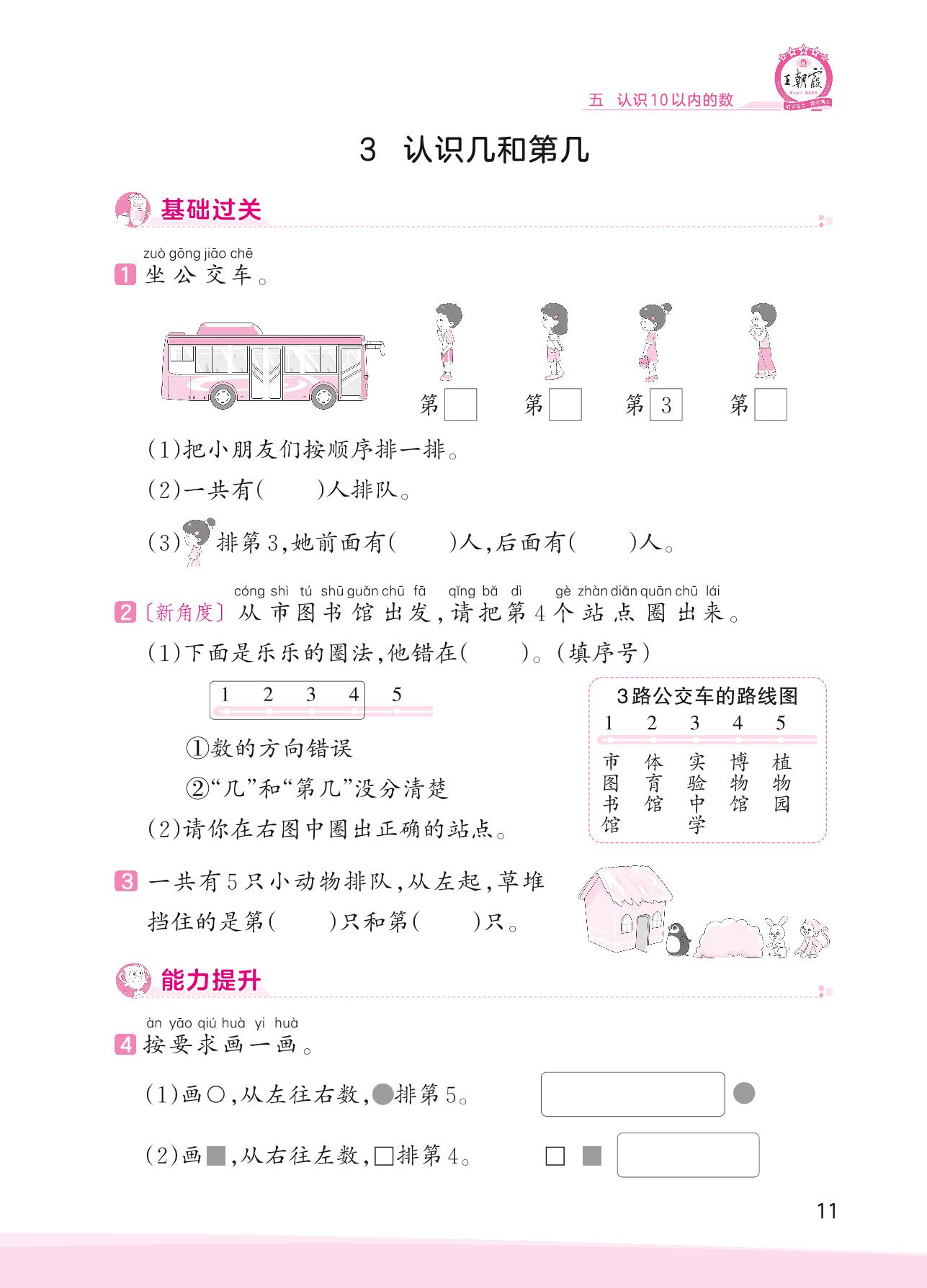 2023上册一年级数学苏教版 五 认识10以内的数——3 认识几和第几