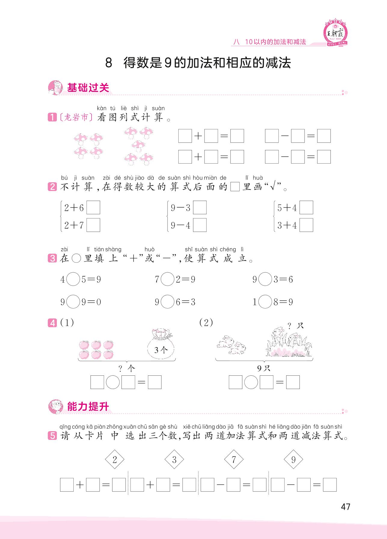 2023上册一年级数学苏教版 八 10以内的加法和减法——8 得数是9的加法和相应的减法