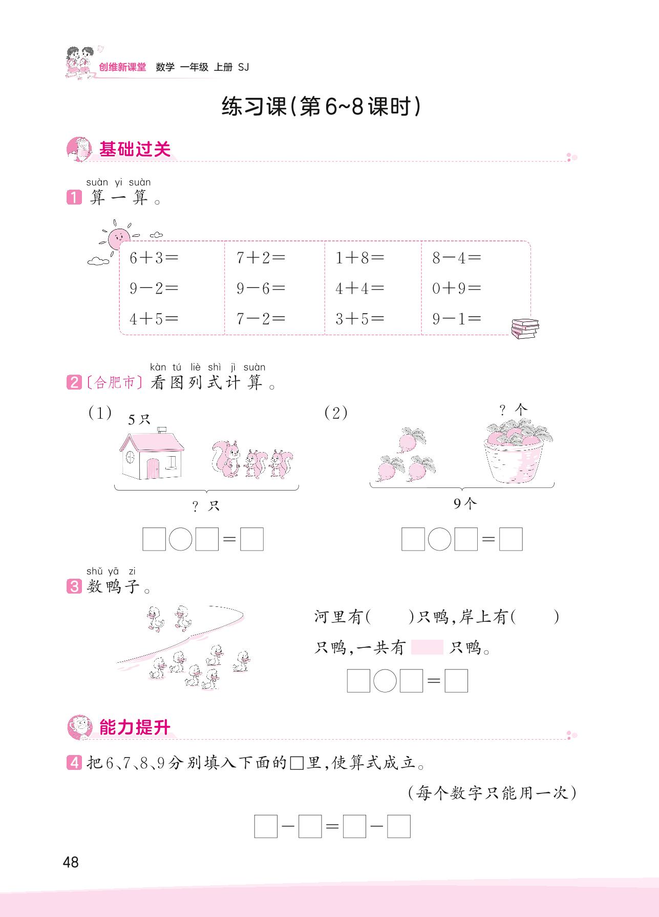 2023上册一年级数学苏教版 八 10以内的加法和减法——练习课(第6~8课时)