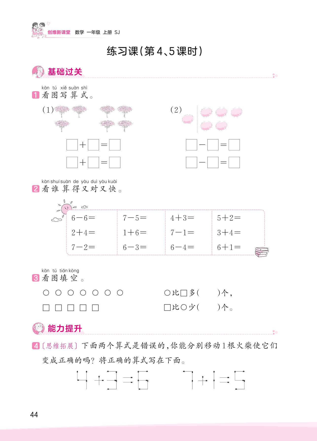 2023上册一年级数学苏教版 八 10以内的加法和减法——练习课(第4、5课时)