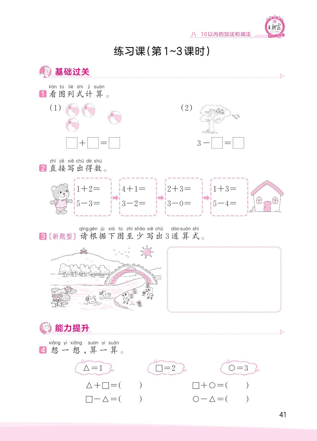 2023上册一年级数学苏教版 八 10以内的加法和减法——练习课(第1~3课时)