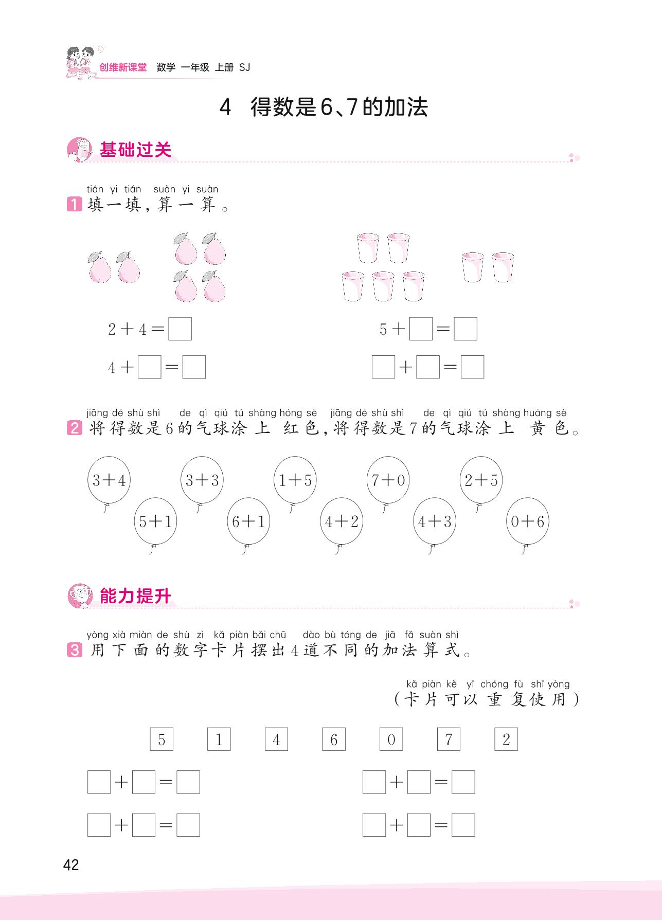 2023上册一年级数学苏教版 八 10以内的加法和减法——4 得数是6、7的加法