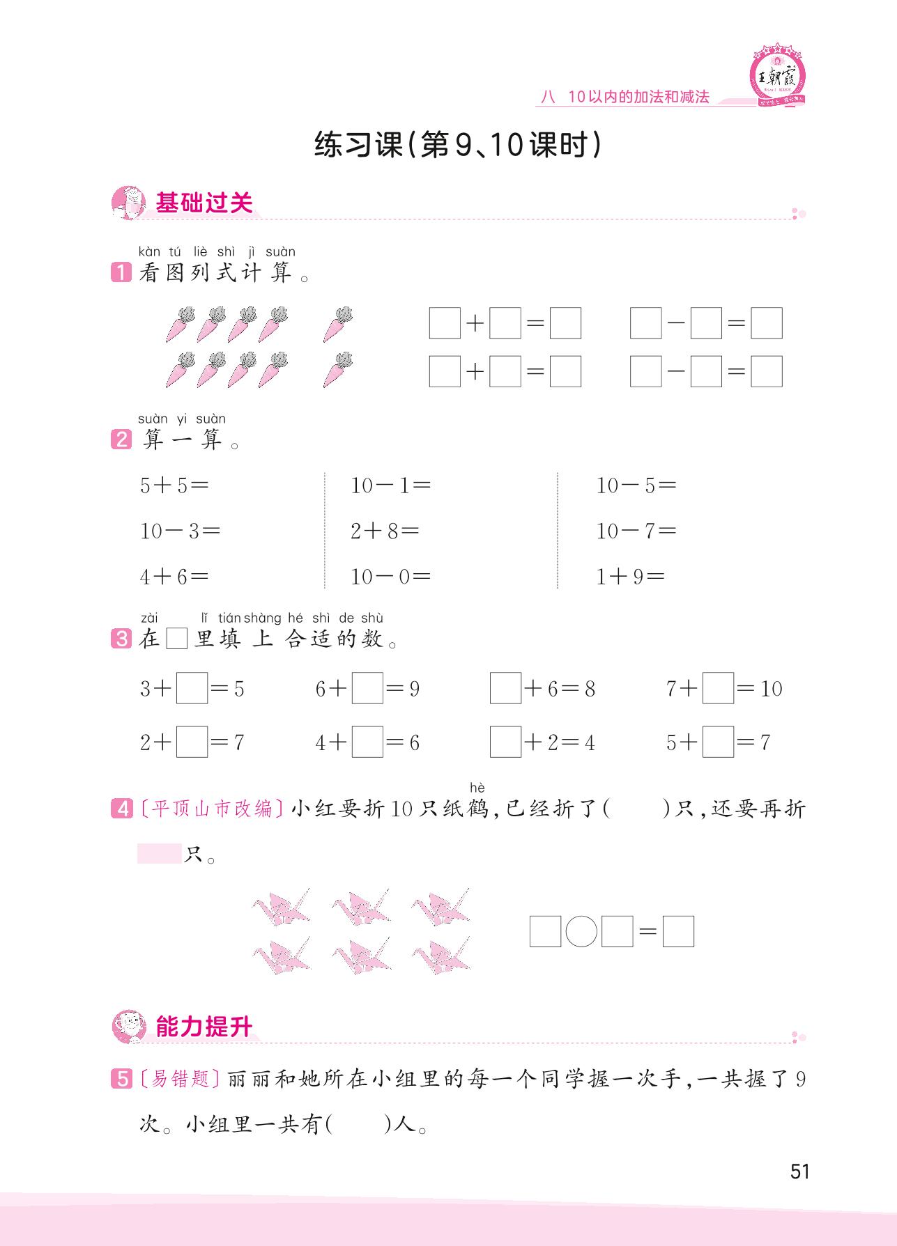 2023上册一年级数学苏教版 八 10以内的加法和减法——练习课(第9、10课时)