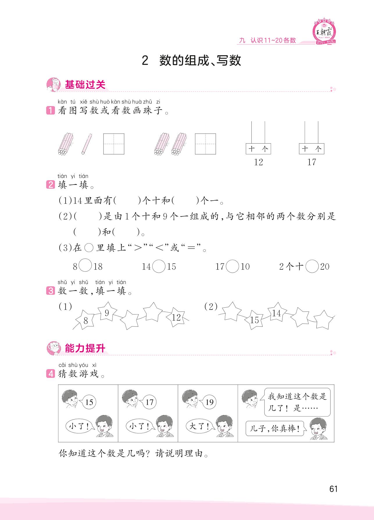 2023上册一年级数学苏教版 九 认识11~20各数——2 数的组成、写数