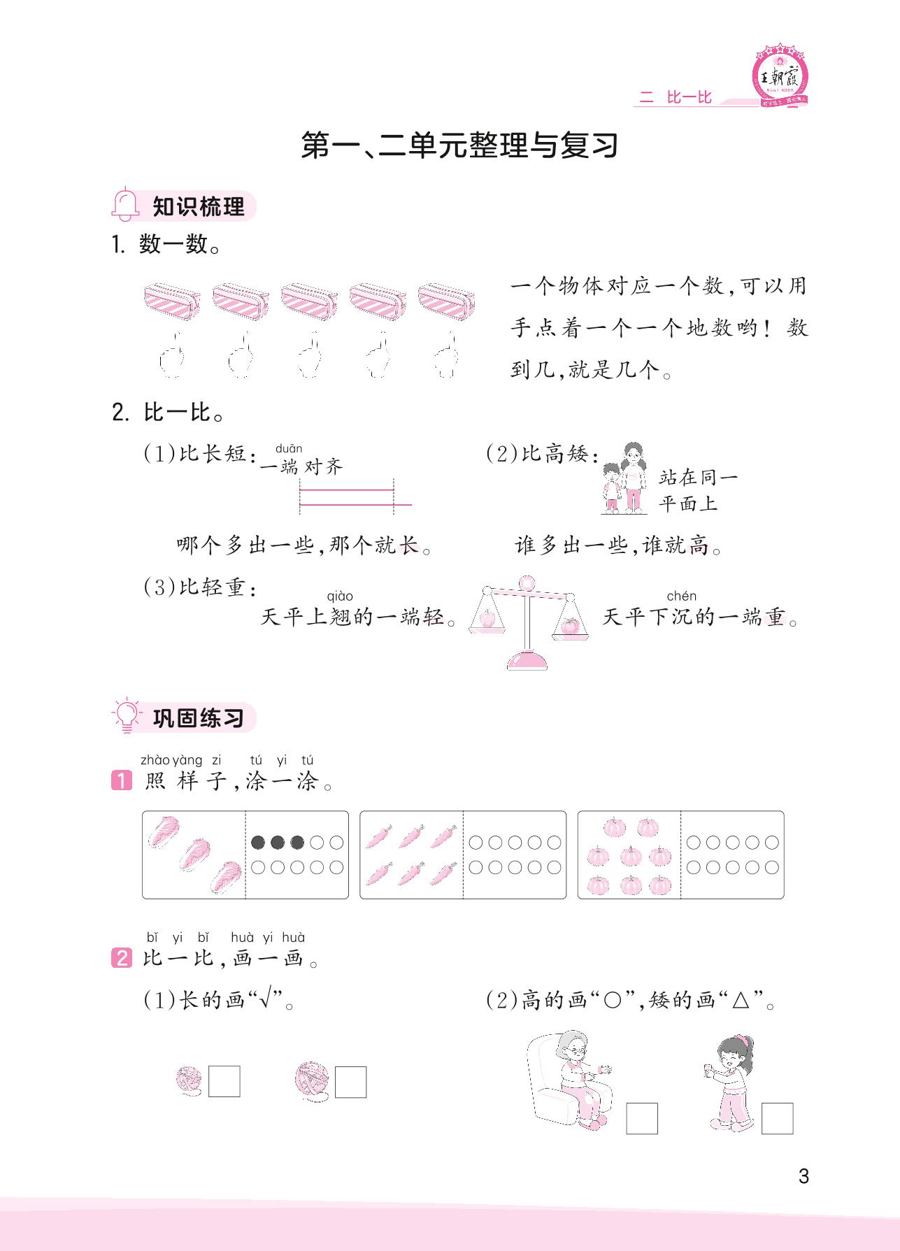 2023上册一年级数学苏教版 第一、二单元整理与复习