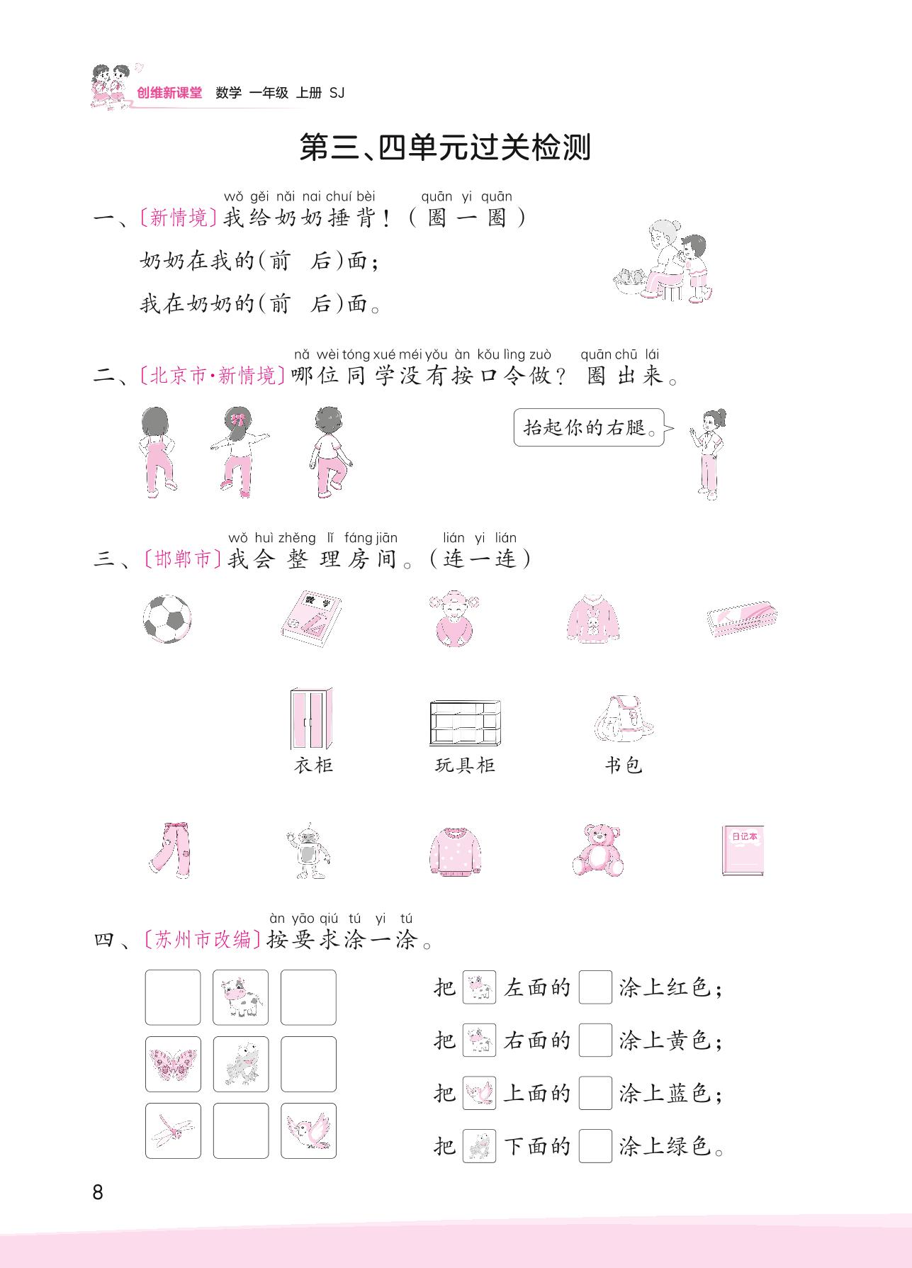 2023上册一年级数学苏教版 第三、四单元过关检测